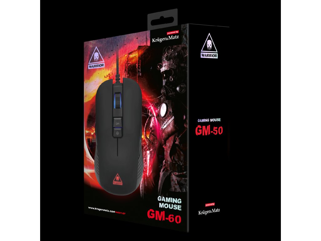 Kruger&Matz Warrior GM-60 je nova miška za igralce z optičnim senzorjem! Njena ergonomska oblika in razporeditev tipk z možnostjo dodelitve funkcij jo naredita idealno miško tako za desničarje kot tudi za levičarje. Miška ima 5-stopenjsko prilagoditev DPI, kar omogoča prilagoditev delovanja vašim potrebam.