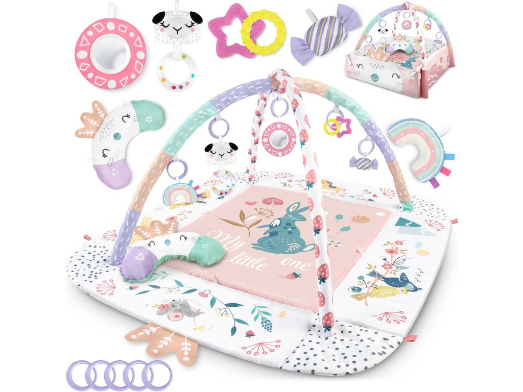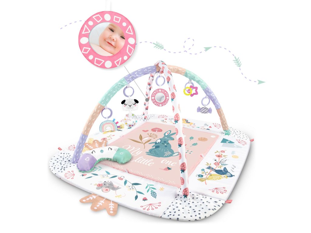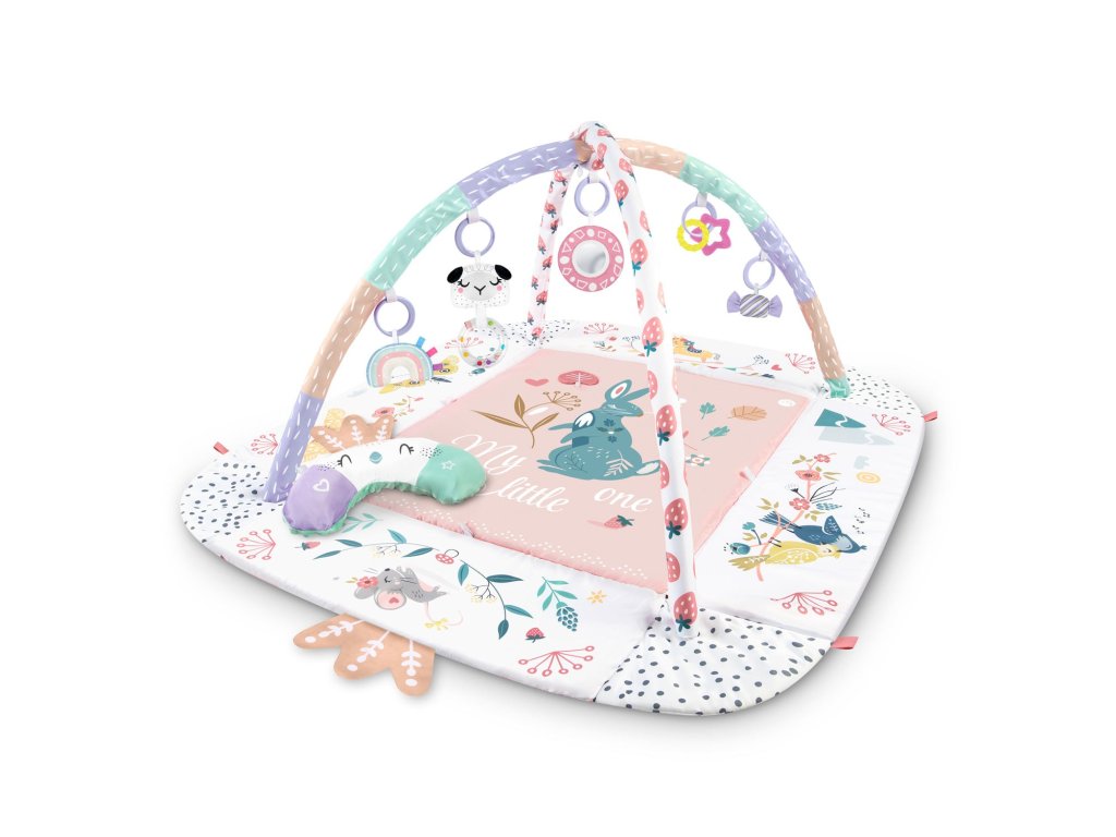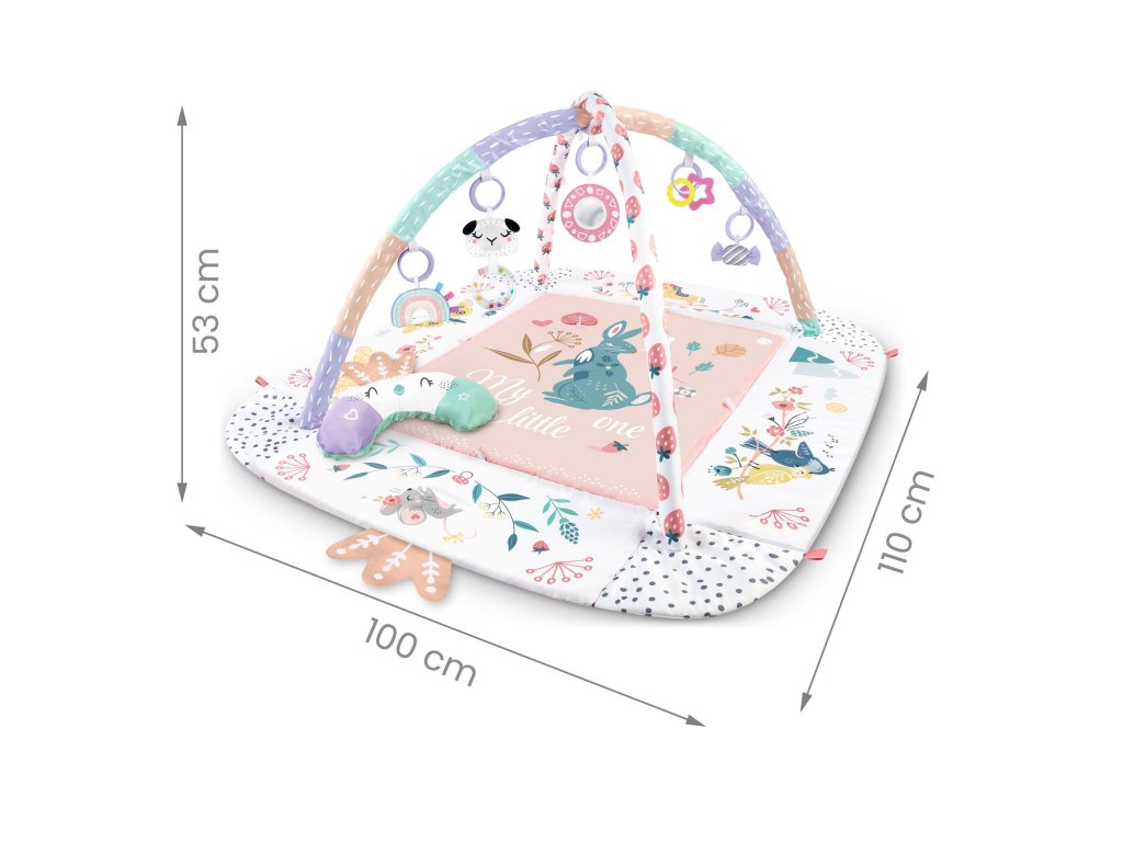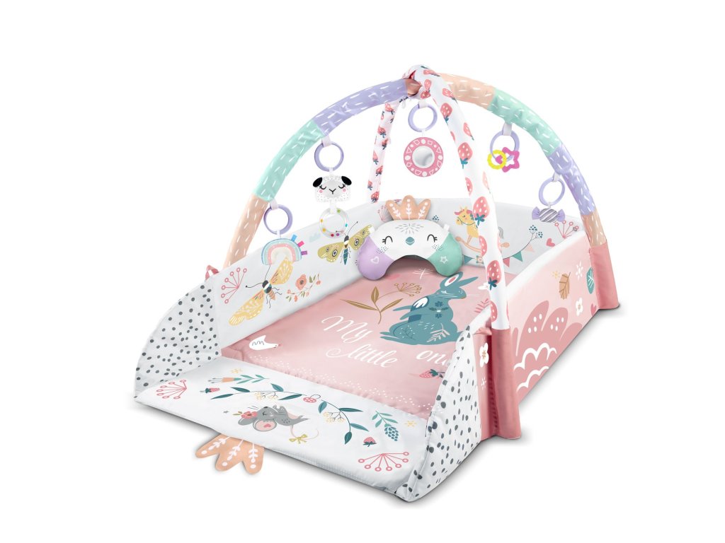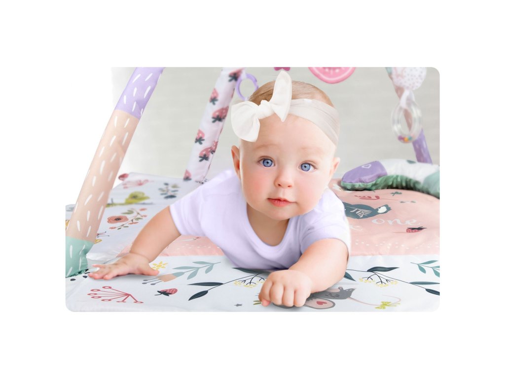 Pastelne barve, ergonomsko oblikovane igrače, ki podpirajo razvoj vašega otroka, in zahvaljujoč odstranljivim obročem bo podloga vašemu otroku služila dlje.