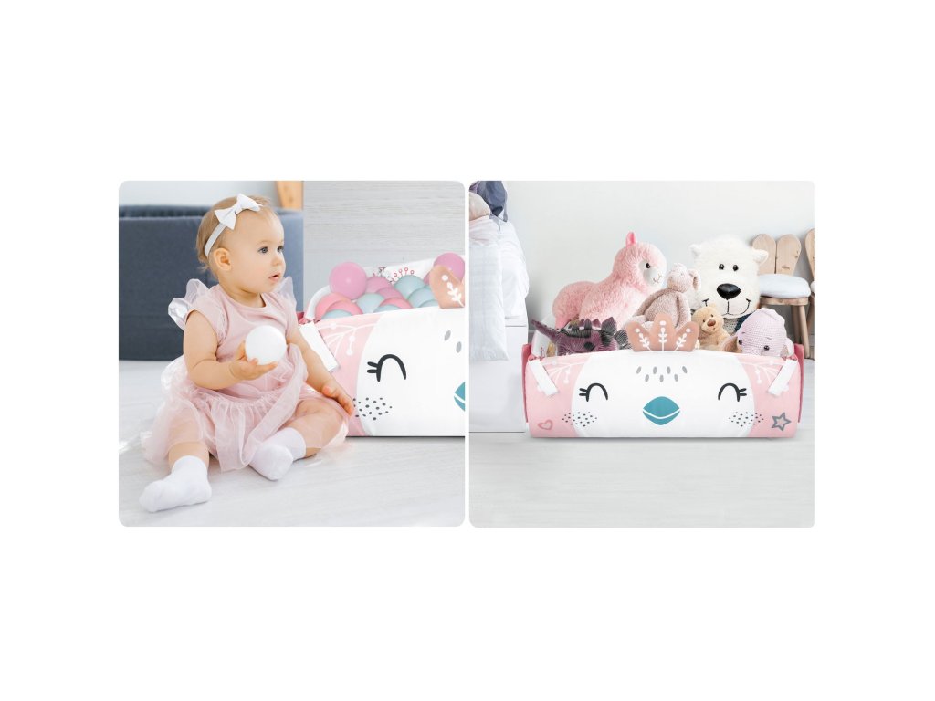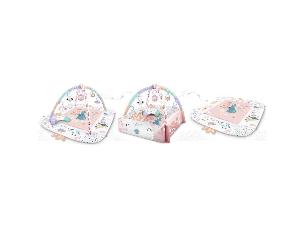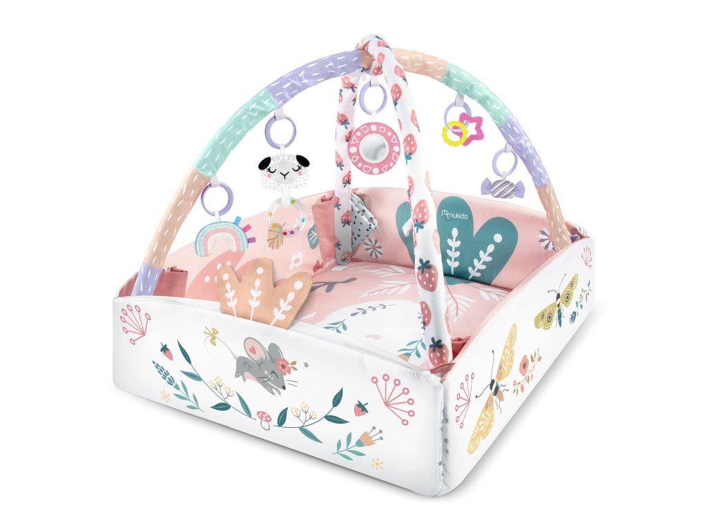 - Komplet vključuje: podlogo, 4 stene, 2 obroča, 7 multifunkcijskih igrač, blazino,