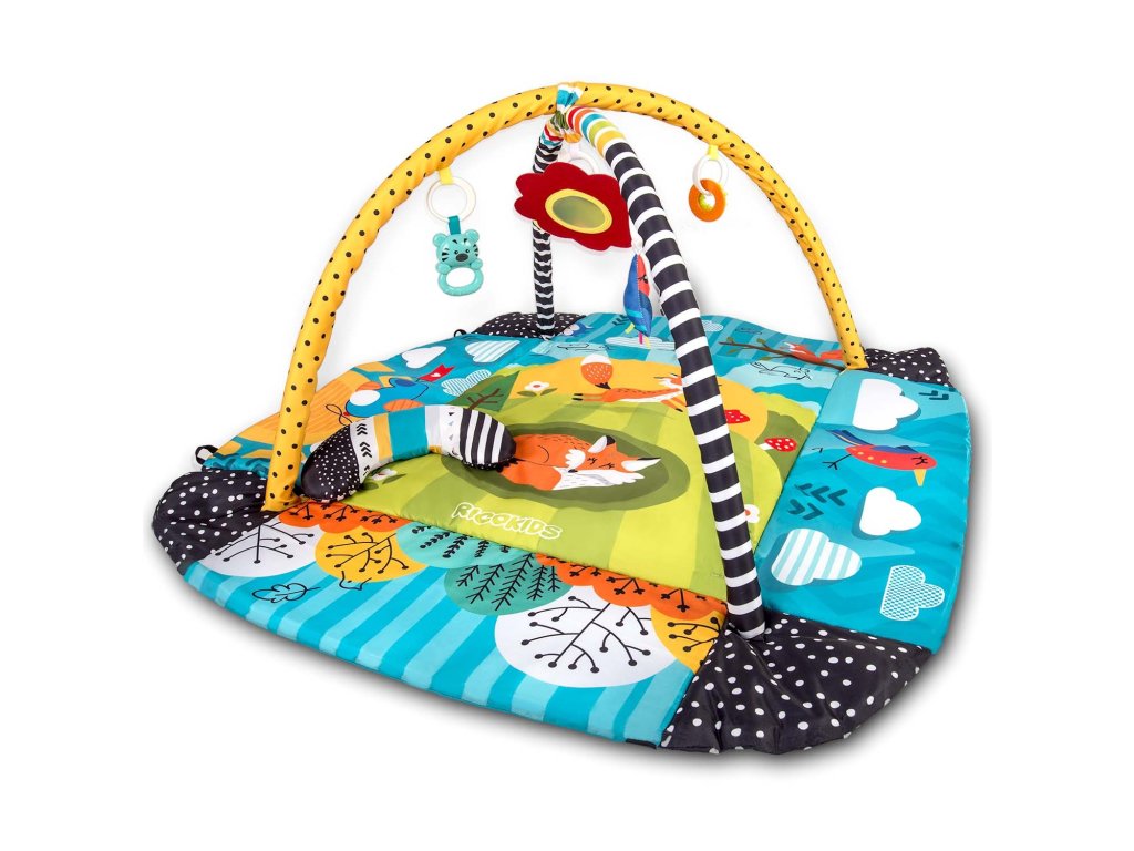 Igra na podlogi pomeni aktivno sodelovanje v fantastični dogodivščini dobre lisice. Edinstvena zgodba razvija otrokovo domišljijo in mu omogoča sodelovanje v pravljični zgodbi, ki je ilustrirana na posameznih elementih podloge.