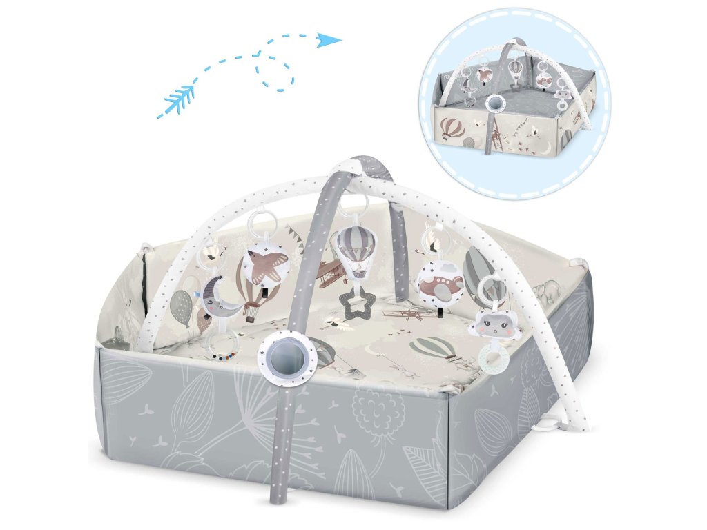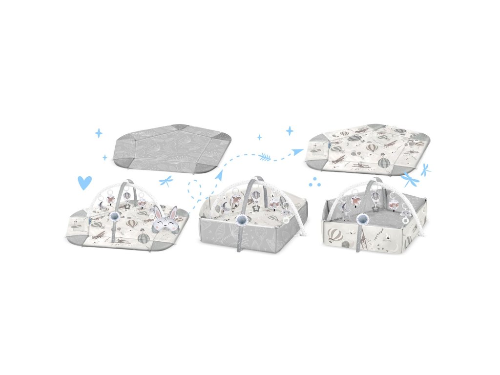 - set vključuje: podlogo, 5 sten, 2 oboka, 7 večnamenskih igrač, vključno z blazino za ležanje na trebuhu BREZPLAČNO,