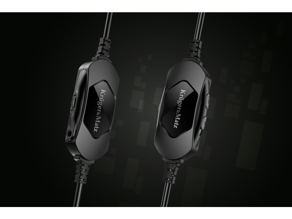 Igralne slušalke Kruger&Matz Warrior GH-100 so opremljene z upravljalno ploščo, ki omogoča ne samo upravljanje funkcij slušalk, temveč ima tudi vhod AUX. Na ta način jih lahko povežete s podlago ali mobilnimi napravami.