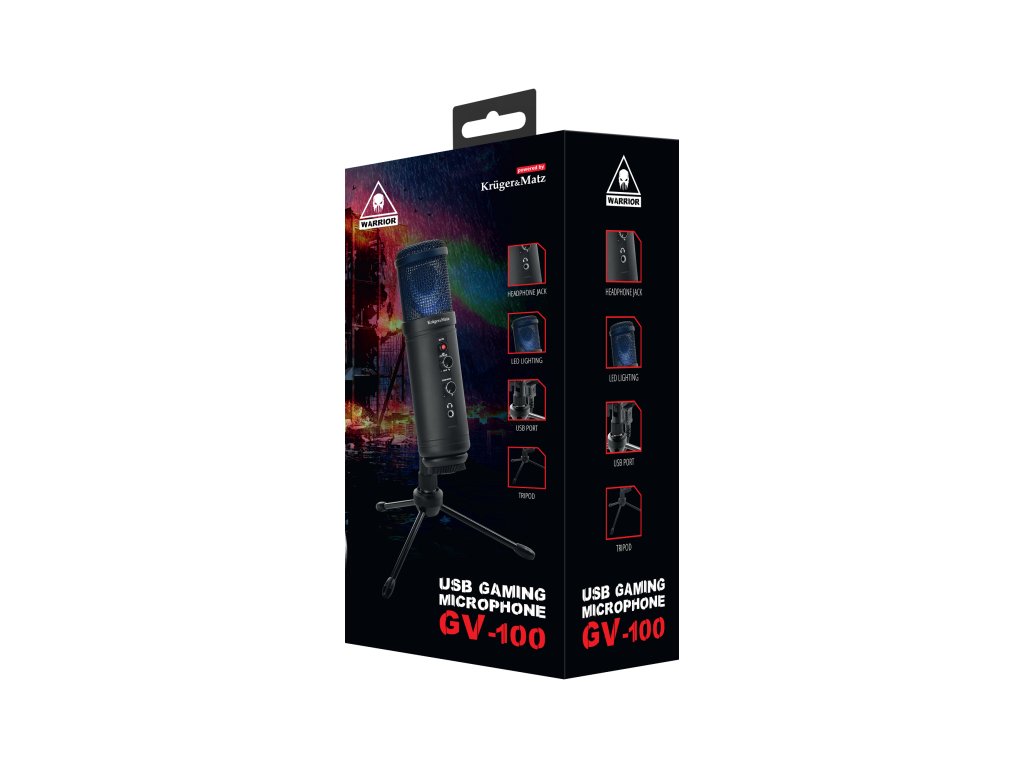Serija Kruger&Matz Warrior je bila razširjena z mikrofonom Warrior GV-100, ki se bo izkazal v vsaki situaciji – ne glede na to, ali igrate spletne igre, snemate podcaste ali pretakate na Twitchu. Velika prednost naprave je stojalo z nastavljivim naklonom, ki povečuje udobje uporabe.