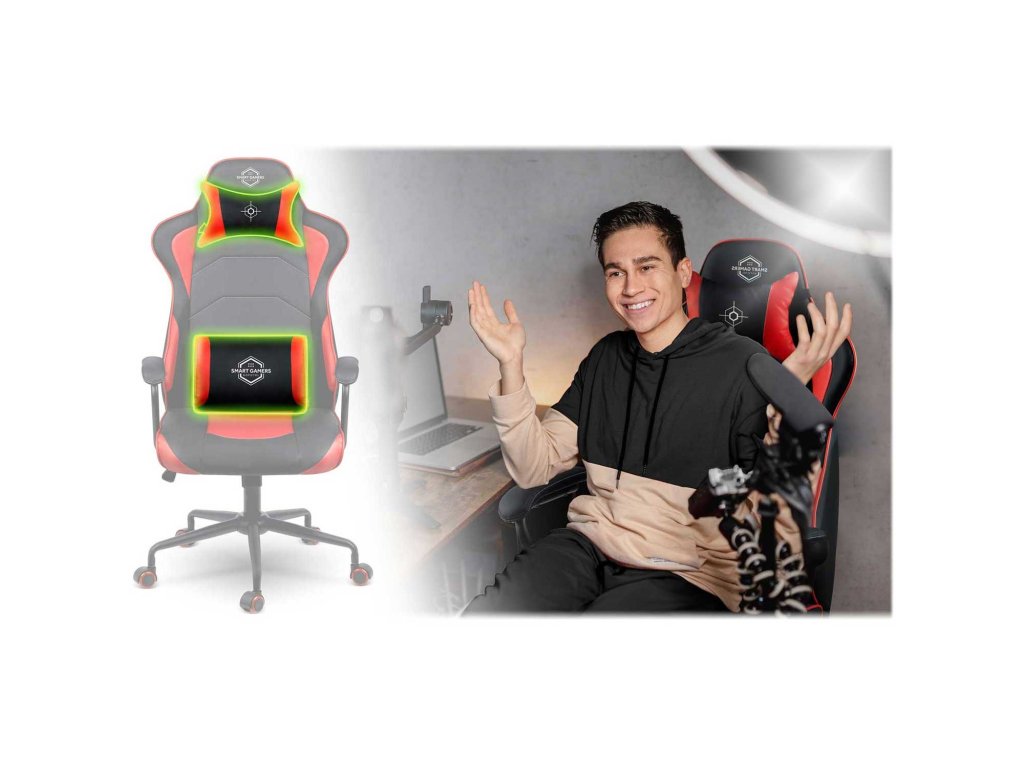 Oblikovan ledveni vzglavnik in glavni vzglavnik pomagata vzdrževati ergonomsko in varno držo. Vzglavniki se prilagodijo obliki vašega telesa in zagotavljajo udobno sedenje.