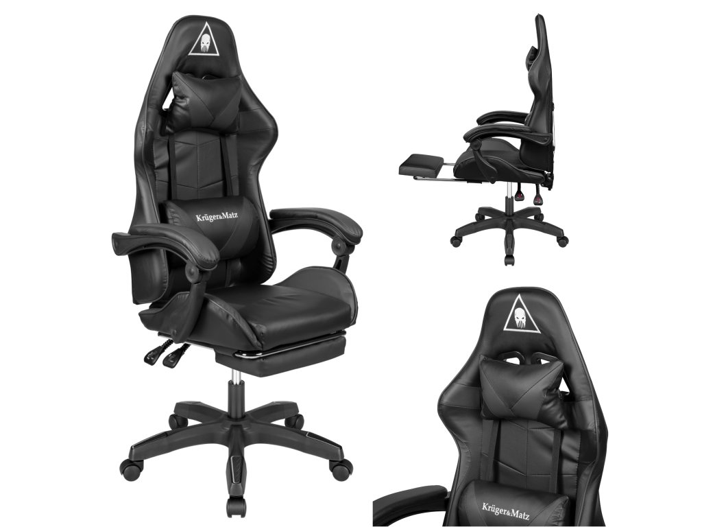 Dosezite višjo raven udobja! Kruger&Matz GX-150 je igralni stol s podnožnikom. Takšna rešitev bo zagotovila tudi pravilno podporo za vaše noge, kar vam bo omogočilo popolno sprostitev.