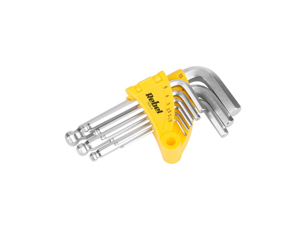 Radi preživljate veliko časa z ročnimi deli ali pa morate sestaviti pohištvo, vendar v kompletu ni bilo ustreznega ključa? Izkoristite ponudbo orodij Rebel Tools. Med njimi boste našli set 9 ampulnih ključev Hex. Za udobje uporabe in zagotovljen red, so ustrezno razporejeni in nameščeni v plastičnem držalu.