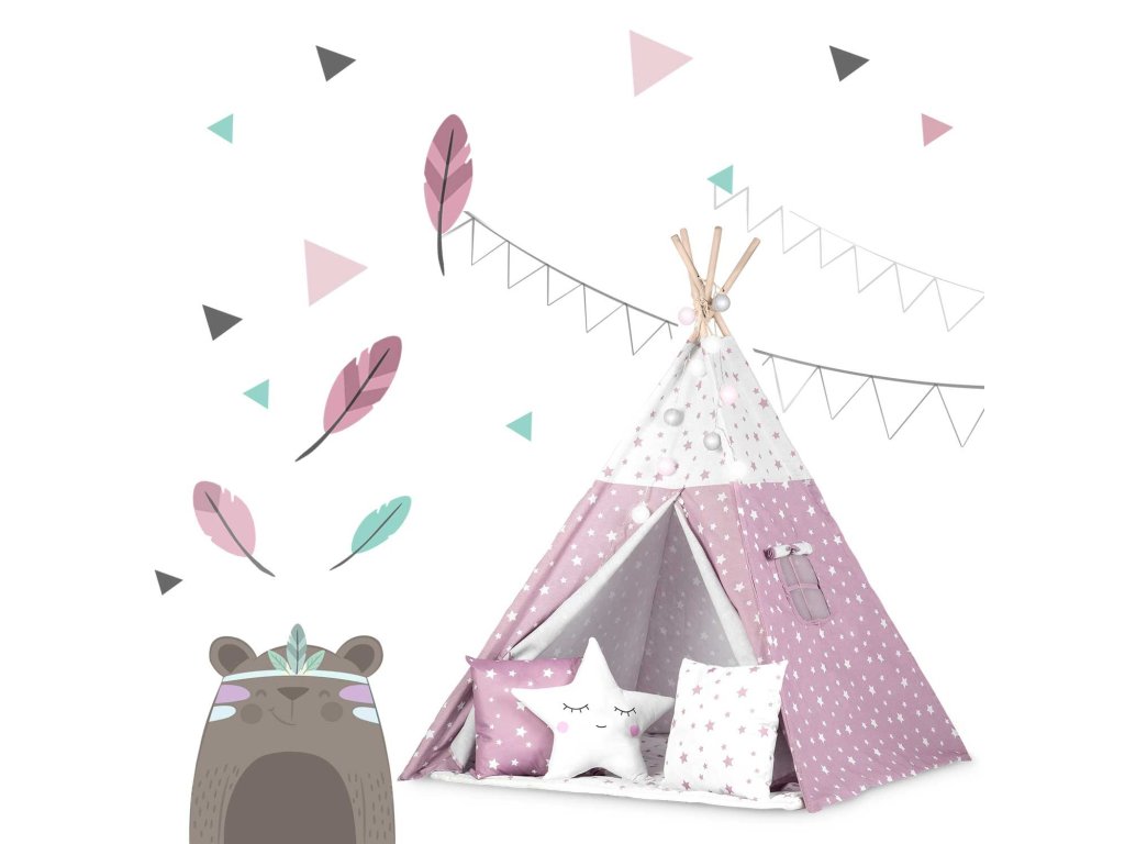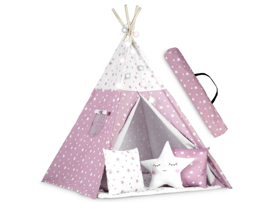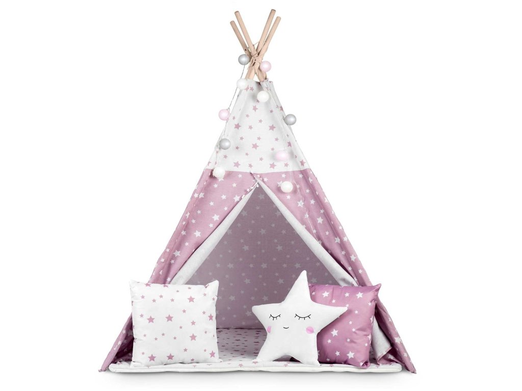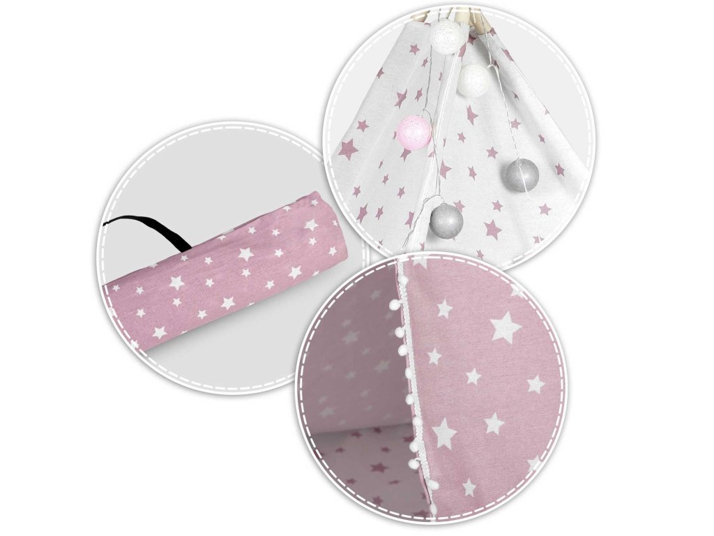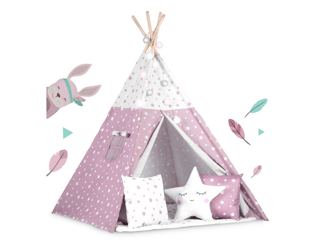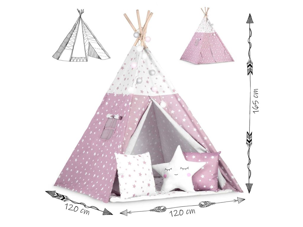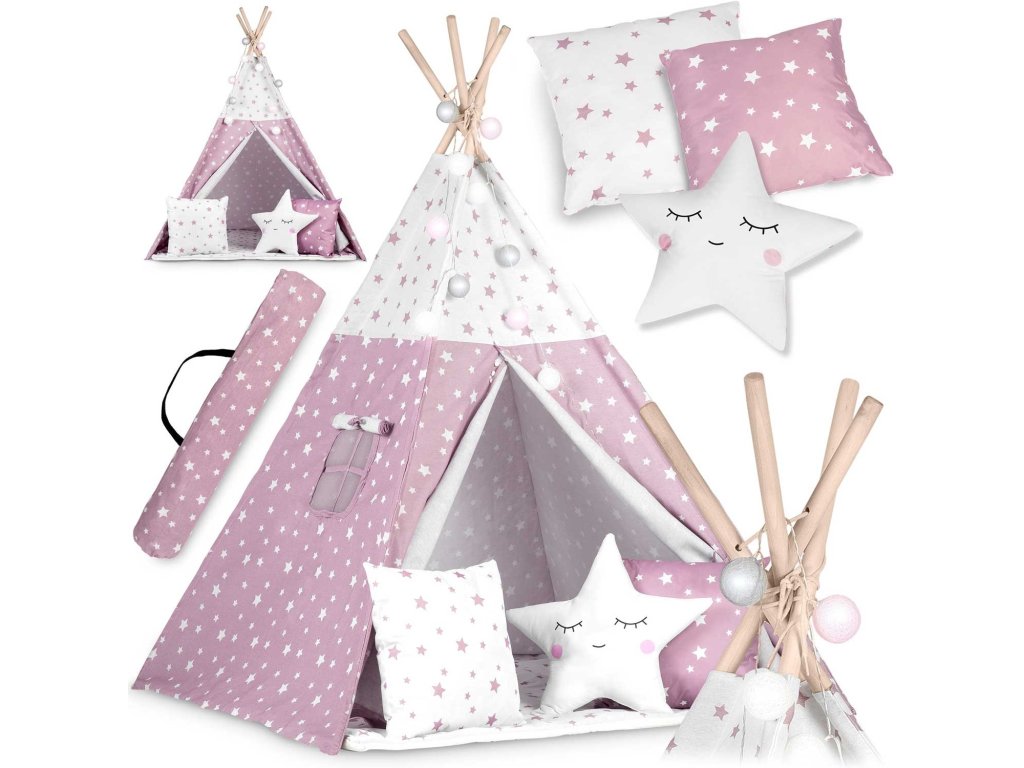 Indijanski šotor za otroke Nukido s svetlobo - roza z zvezdicami