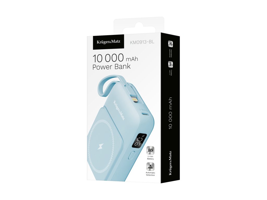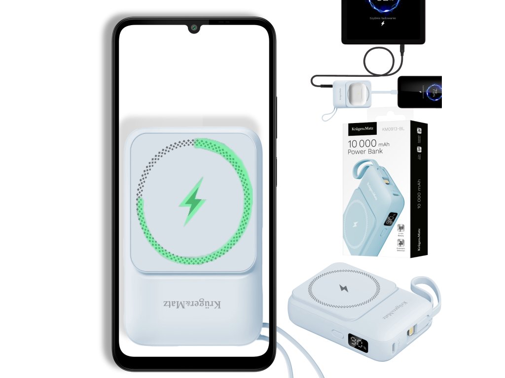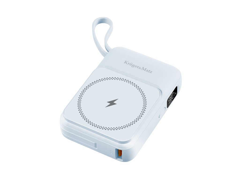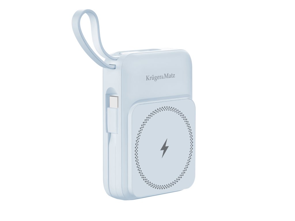 Indukcijska powerbanka Kruger&Matz 10000 mAh Mag Safe z modrim kablom
