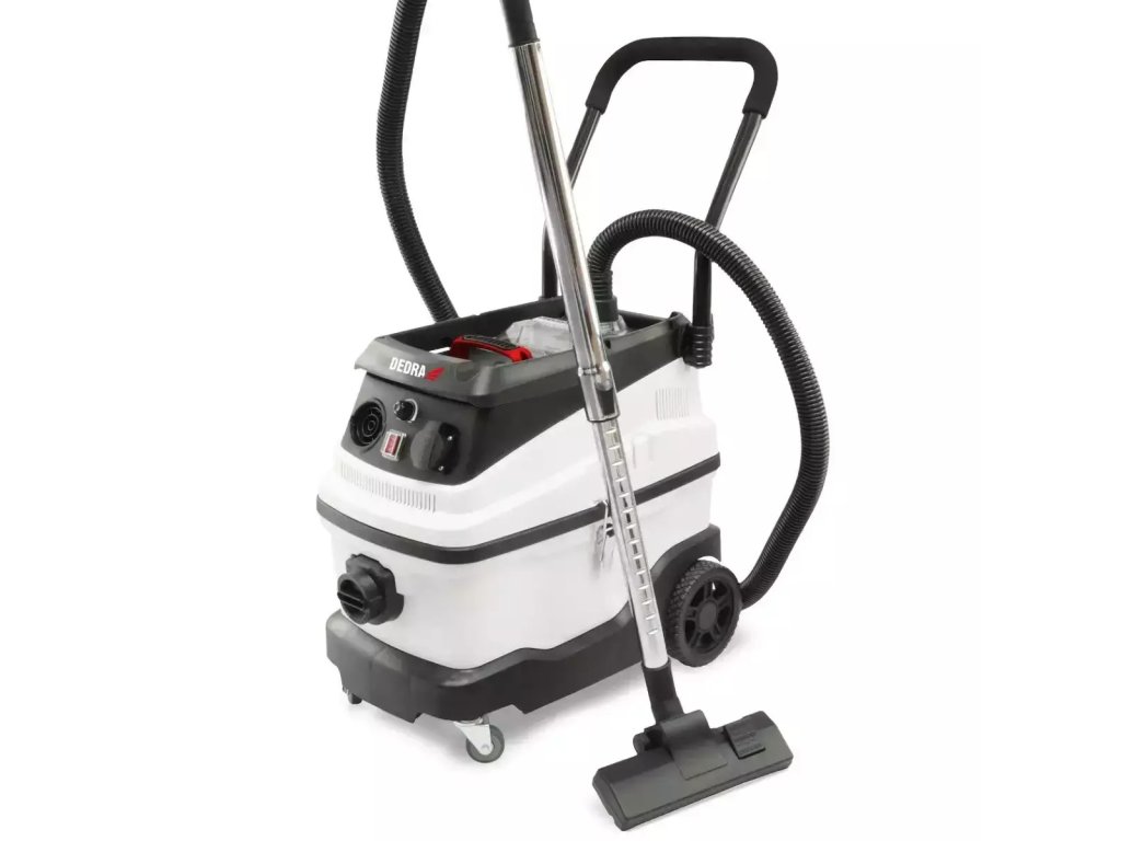 Industrijski sesalnik DED6603 je primeren za suho in mokro čiščenje (sesanje vode). Omogoča čiščenje katerekoli površine tako v domačih kot tudi komercialnih prostorih. Omogoča hitro in udobno čiščenje delovnega mesta, odstranjevanje umazanije in ostankov po vrtanju, rezanju in brušenju. Ta sesalnik je primeren za odstranjevanje mavčnega prahu. Zahvaljujoč funkciji pihanja vam sesalnik omogoča izpihovanje težko dostopnih mest. Sesalnik ima dodatno električno vtičnico in sinhronizirano funkcijo. Regulator sesalne moči omogoča optimalno nastavitev delovnih pogojev glede na odstranjevano umazanijo. Poleg tega je sesalnik opremljen z vodnim filtrom za zajem nečistoč iz zraka.Značilnosti: