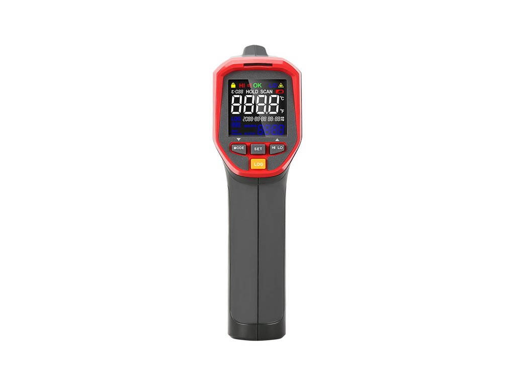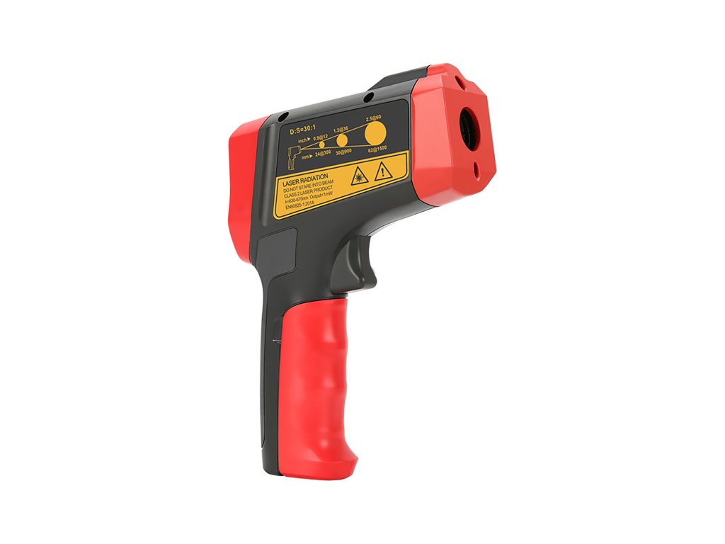 Uni-T UT303C+ ponuja merjenje temperature v območju od -32°C do 1300°C (-25,6°F do 2372°F) z visoko natančnostjo ±1,5°C (±3°F) in ponovljivostjo 0,7°C (1,5°F). Zaradi kratkega odzivnega časa, ki znaša le 250 ms, naprava hitro reagira na spremembe temperature, kar omogoča bliskovito pridobitev natančnih rezultatov. Spektralna občutljivost 8 µm ~ 14 µm ter optimalna merilna razdalja 5-10 cm zagotavljata natančnost v različnih merilnih pogojih.