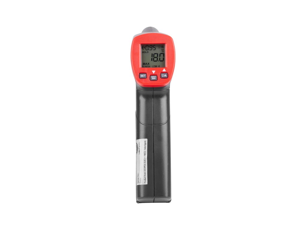 Uni-T UT300S ponuja udobje uporabe zahvaljujoč širokemu razmerju med razdaljo do testirane površine 12:1, kar omogoča natančna merjenja z večje razdalje. Hiter odzivni čas 500 ms ter osvetljen LCD zaslon povečata udobje dela v različnih svetlobnih pogojih. Dodatne funkcije, kot so možnost zamrznitve zadnjega odčitka in izbira enote temperature °C/°F, povečujejo vsestranskost naprave.