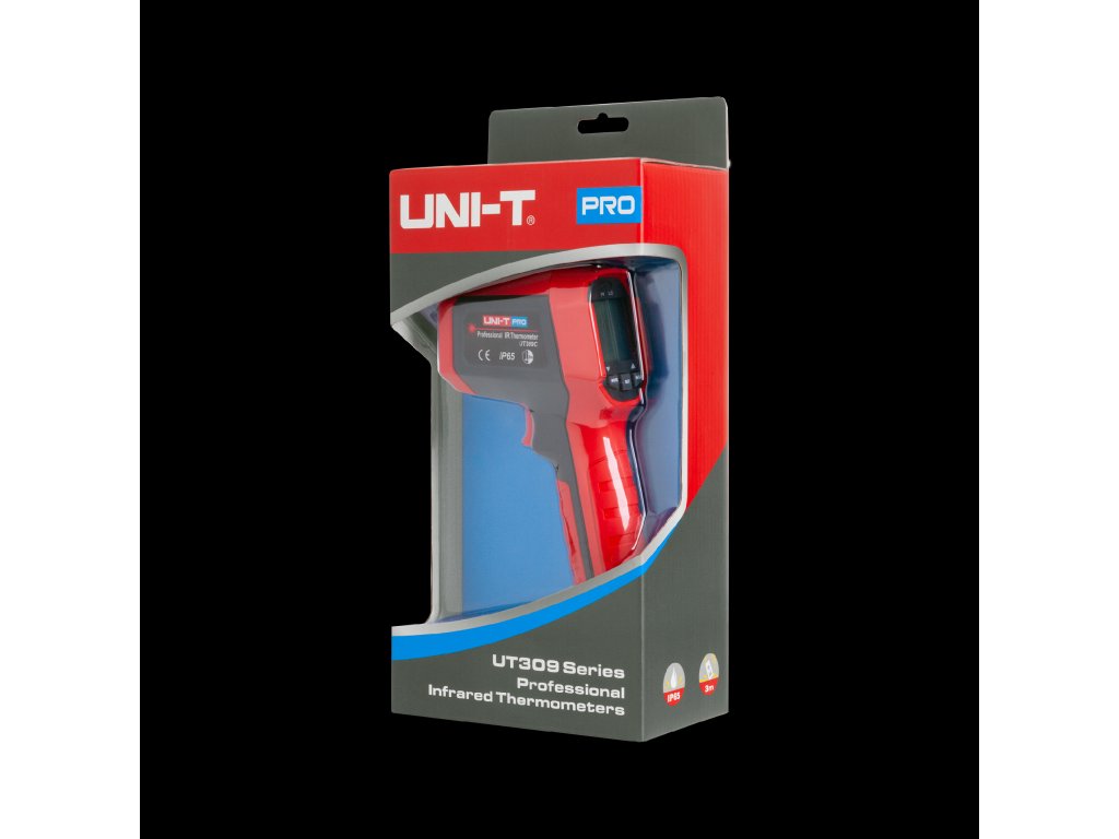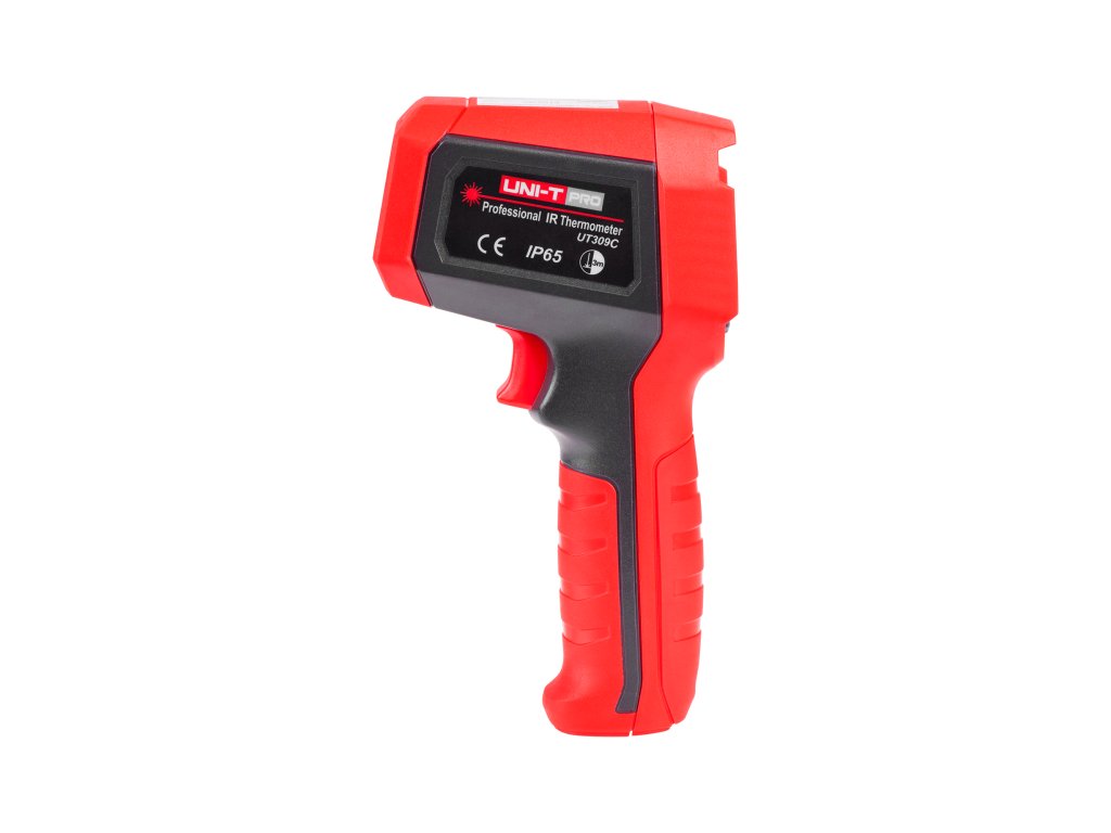 UT309C ponuja merjenje temperature v širokem razponu od -35°C do 650°C (-31°F do 1202°F) z natančnostjo ±1,8°C ali ±1,8%. Ločljivost 0,1°C/0,1°F ter ponovljivost ±1,0°C ali ±0,8% omogočata zanesljive in ponovljive rezultate. Zahvaljujoč razmerju med razdaljo in testirano površino 12:1 merilnik omogoča natančne meritve na večjih razdaljah.