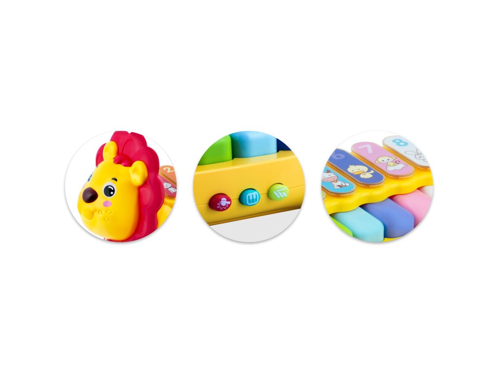 Izdelek je idealen za učenje imen živali in barv . Ima glasbeno ploščo in sijoče tipke.
