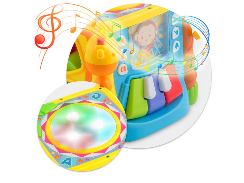 Ob pritisku na boben predvaja dinamično glasbo s pisano lučjo.