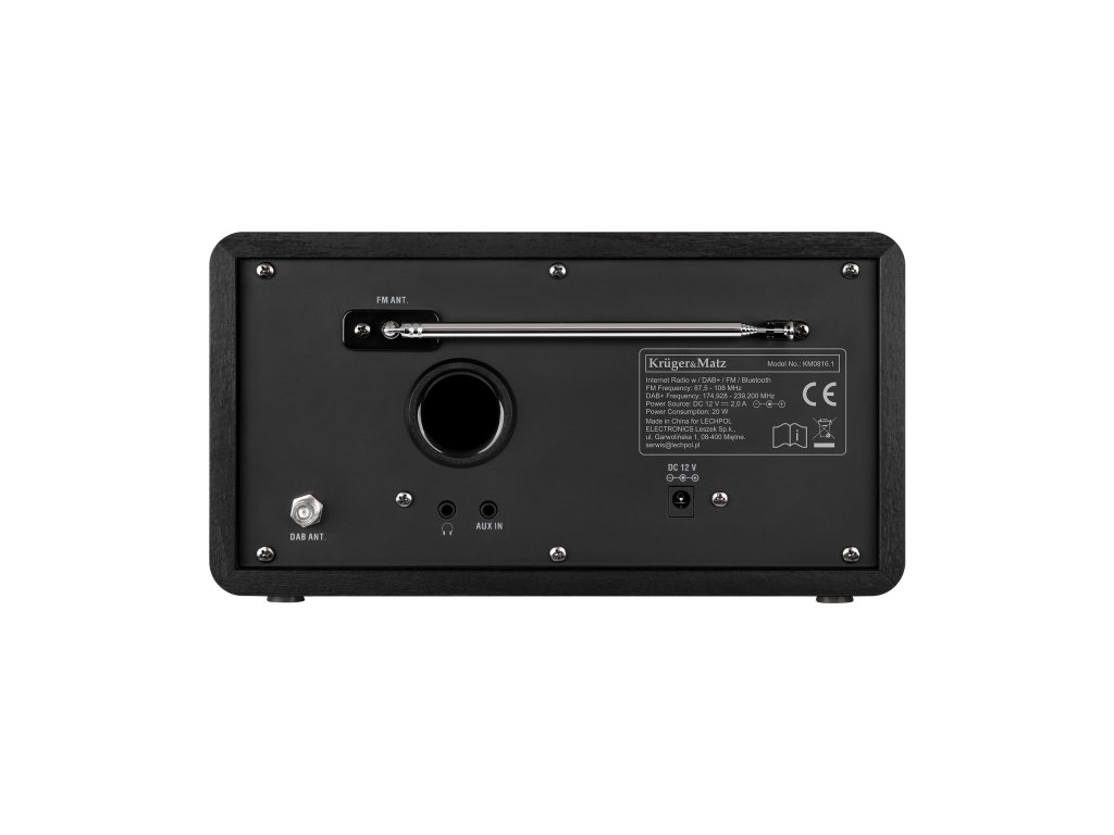 Želite poslušati svoj najljubši seznam predvajanja, shranjen v telefonu ali MP3 predvajalniku Povežite naprave prek vtičnice AUX ali preko Bluetooth in uživajte v moči zvočnikov internetnega radia KM 816.1.