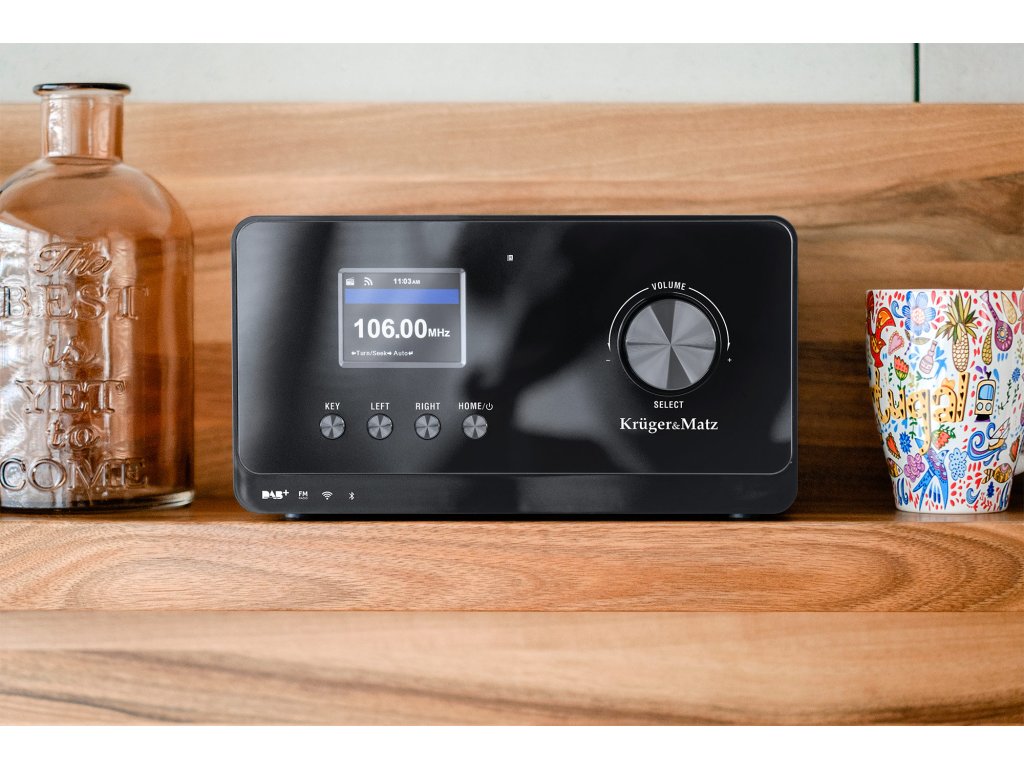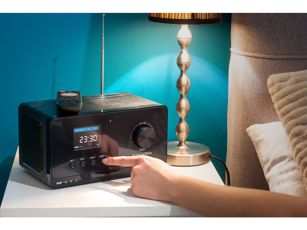 Internetni radio KM 816 v barvi klavirskega črnila bo odlično dopolnil tako kuhinjo kot spalnico. Naj ti prebujanje popestrijo zvoki francoskih balad, jazza, rock’n’rolla ali druge glasbe s tvojih najljubših radijskih postaj. Glasbeni alarm