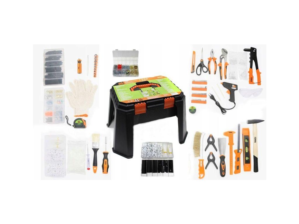 ISMA Univerzalni VELIKI komplet ORODJA škatla STOLIČKA 1500 KOMPONENTOV