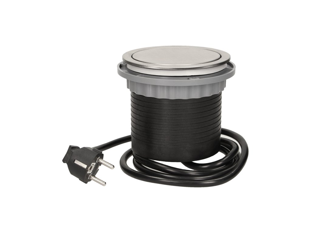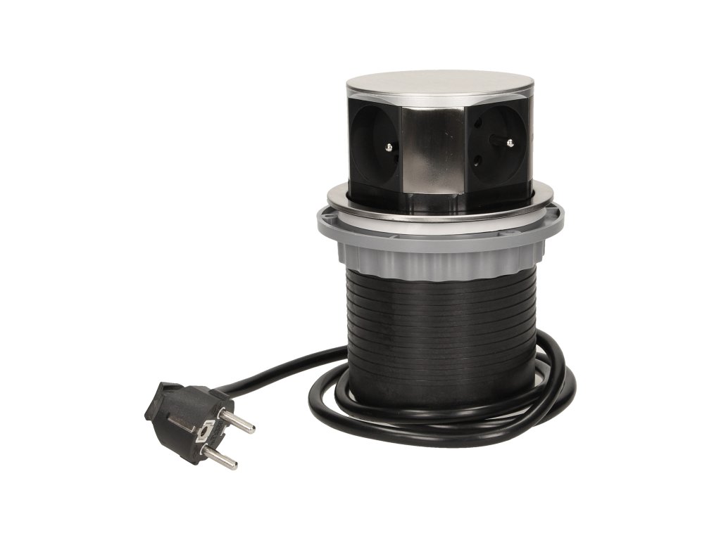 Set štirih napajalnih vtičnic 2P+Z v izvlečnem zgornjem pokrovu omogoča dostop do električnih vtičnic. S pritiskom na ohišje natančen mehanizem samodejno premakne ploščo z vtičnicami. Zasnovan za notranjo vgradnjo v mize, mizne plošče in pisarniško pohištvo. Za vgradnjo naprave v mizno ploščo je potrebna le ena odprtina s premerom 9,5 cm in globino 10 cm.
