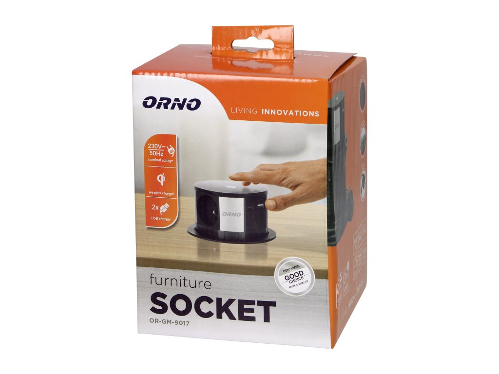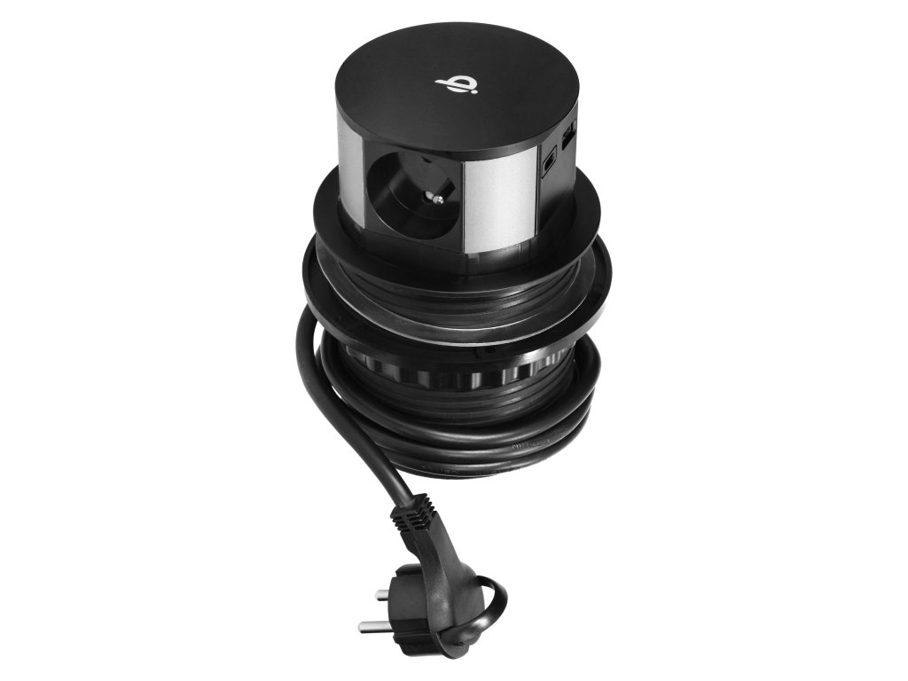 Komplet treh vtičnic z ozemljitvijo in zaščito tokokroga, priključenih na USB polnilec s sistemom QC 3.0, nameščenih v izvlečnem ohišju. Komplet ima tudi indukcijski polnilec, ki omogoča udobno, brezžično polnjenje zunanjih naprav. Te vtičnice so namenjene za vgradnjo v konferenčne mize, pisarniške in kuhinjske delovne površine. Opremljen z 1,5 m kablom. Natančen mehanizem ob pritisku samodejno izvleče ploščo z vtičnicami. Vgradnja zahteva le odprtino s premerom 10 cm.