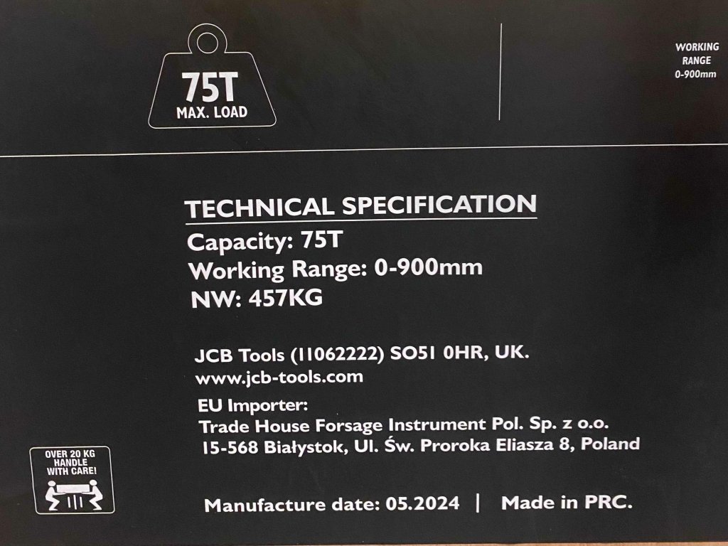JCB Hidravlično-pnevmatični delavniški tlačni stroj 75T + manometer