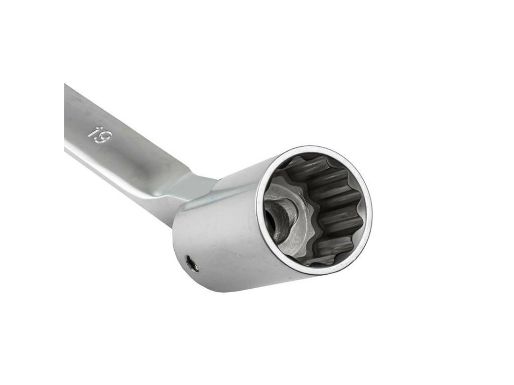 - Dve velikosti v enem orodju (18 mm in 19 mm) – obvladovanje najpogosteje uporabljenih pritrdilnih elementov brez potrebe po zamenjavi ključa.Hiter prehod iz ene velikosti na drugo, kar povečuje učinkovitost dela.