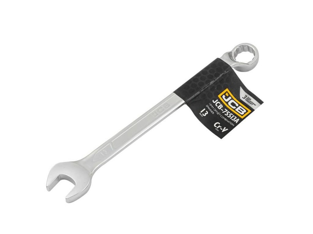 JCB Ključ OTVOREN-OBROČEN 2-stranski S PODVIGOM 75 STOPINJ 13 mm Cr-V 12-KOTNI