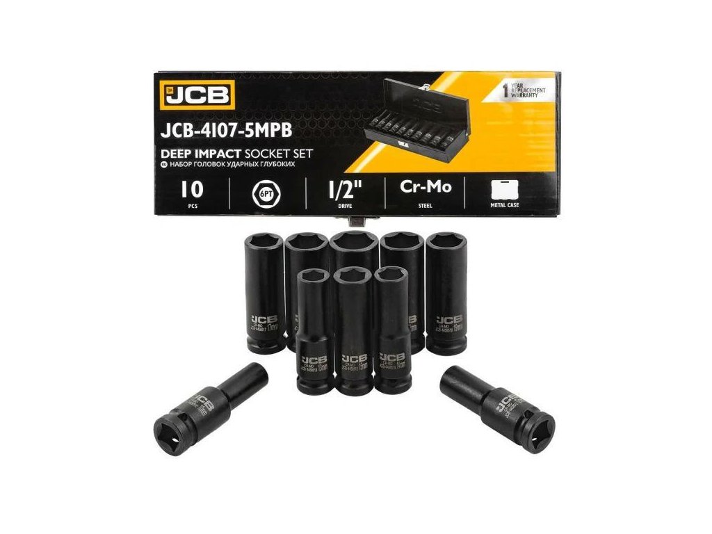 JCB Komplet globokih udarnih nastavkov 1/2" Cr-Mo 6-koten 10 kosov