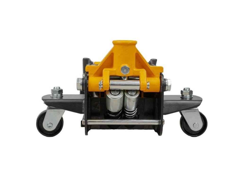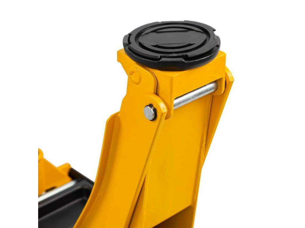 Ergonomičen, dolg ročaj z možnostjo nastavitve omogoča natančno upravljanje dvigovanja in spuščanja – brez tveganja nenadnega spuščanja vozila. Vgrajen varnostni ventil preprečuje preobremenitev hidravličnega sistema.