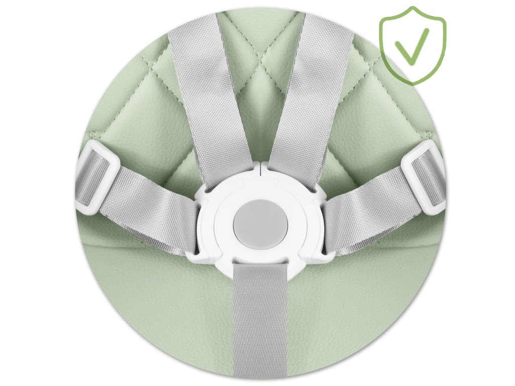 Zanesljivi in preverjeni pet-točkovni varnostni pasovi zagotavljajo, da otrok ne bo mogel samostojno zapustiti stola in se izpostaviti padcu.