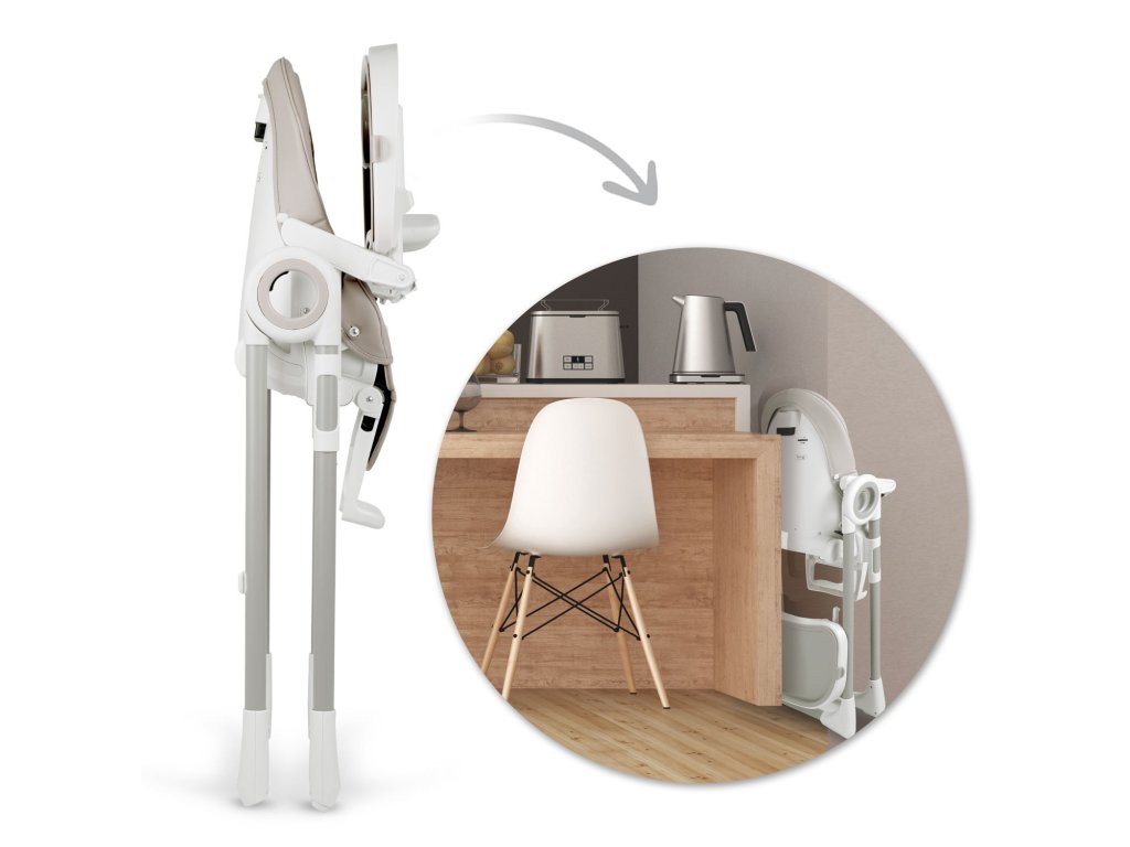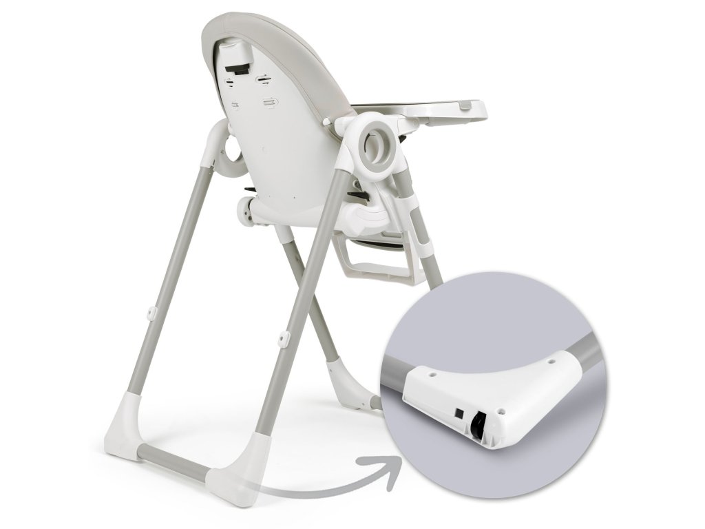 - Enostaven za uporabo - odstranljiv pladenj z dodatnim odstranljivim nastavkom z dvignjenimi robovi, ki preprečujejo premikanje hrane ali kozarca, vgrajena kolesca na zadnjih nogah