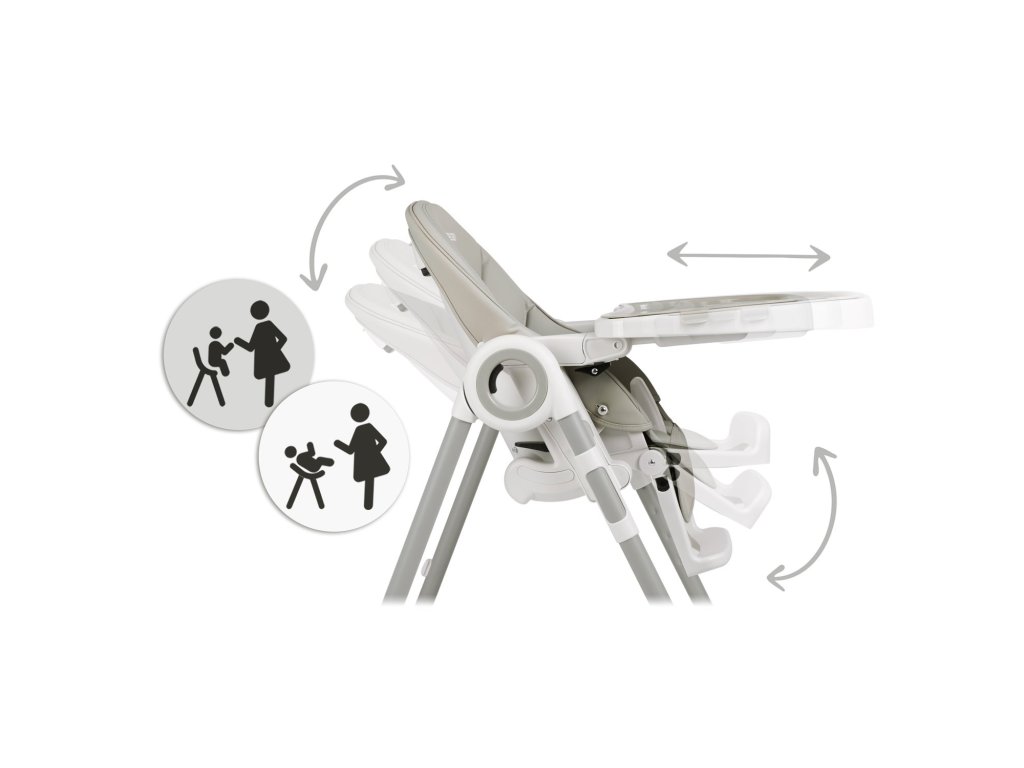 - lahko prilagodite položaj pladnja ali ga odstranite, če želite otroka vzeti iz stolčka ali ga približati k mizi med družinsko večerjo