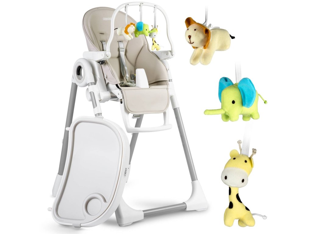 Belo je moderen, večnamenski stolček za hranje, namenjen otrokom od 6 mesecev do 3 let starosti.