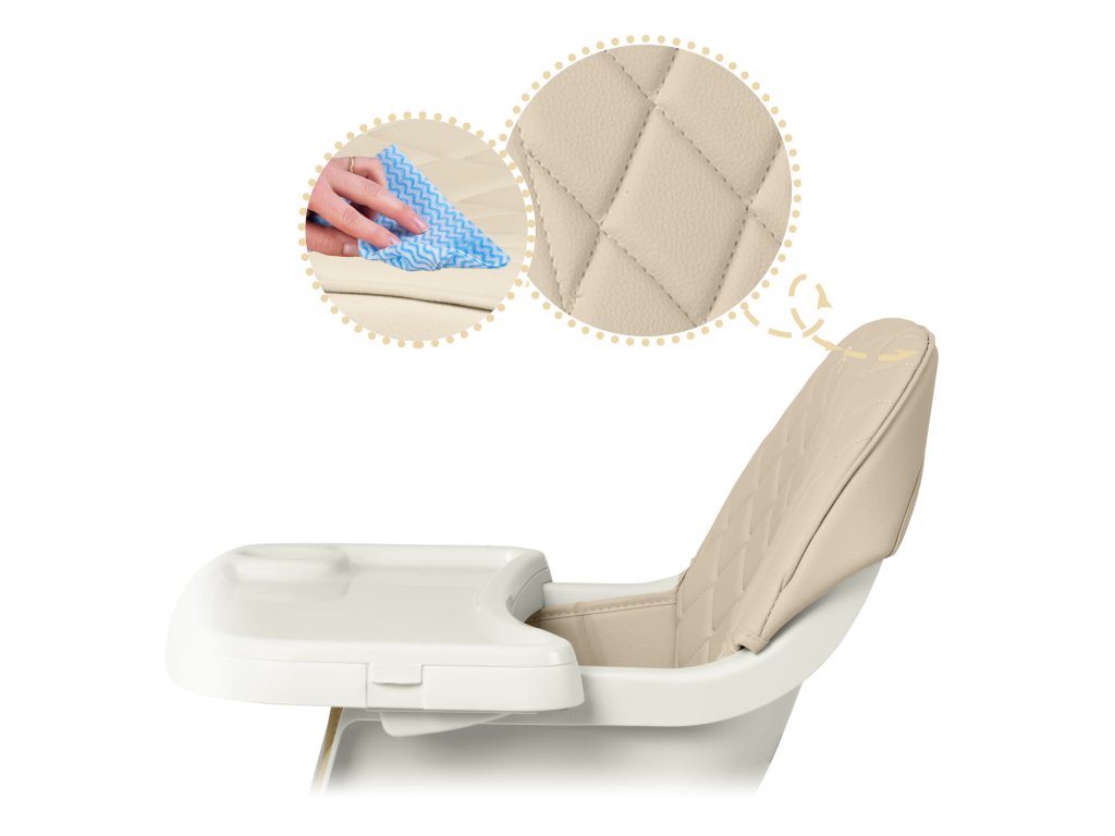 Odstranljiv zgornji del pladnja precej olajša ohranjanje čistoče. Mehak in udoben material prevleke je izdelan iz materiala, ki ne vpija umazanije.