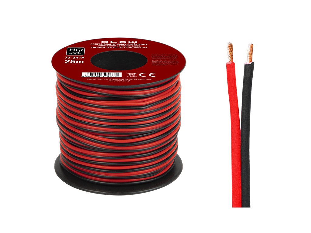 Kabel za zvočnike 2x0,35 mm črno/rdeč 25 m