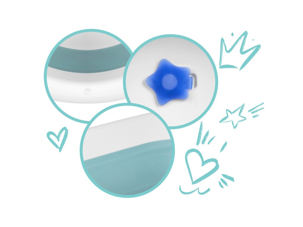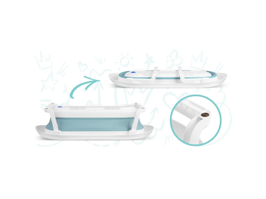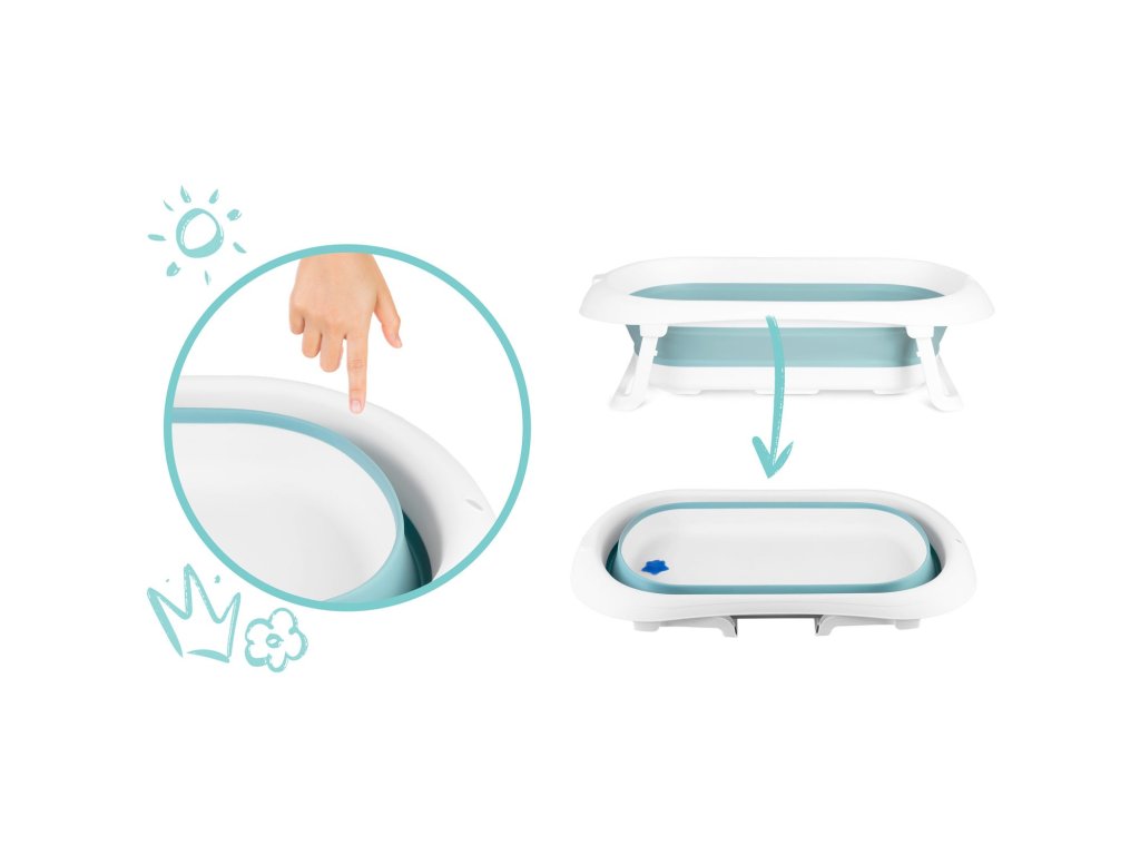 Zložljive noge preprečujejo zlaganje kadi med kopanjem, nedrseče noge pa zagotavljajo varnost na spolzki površini.