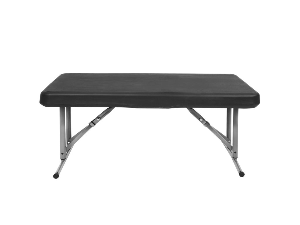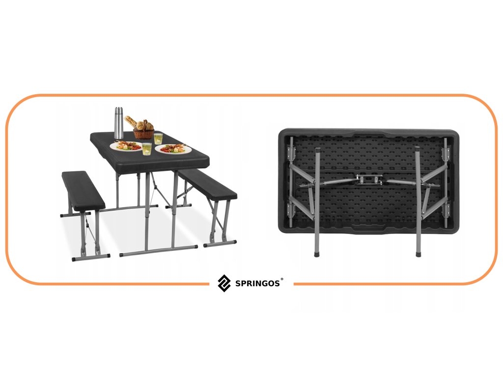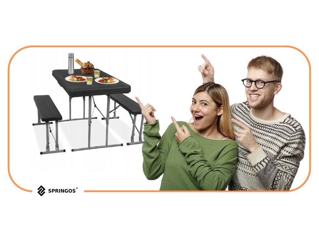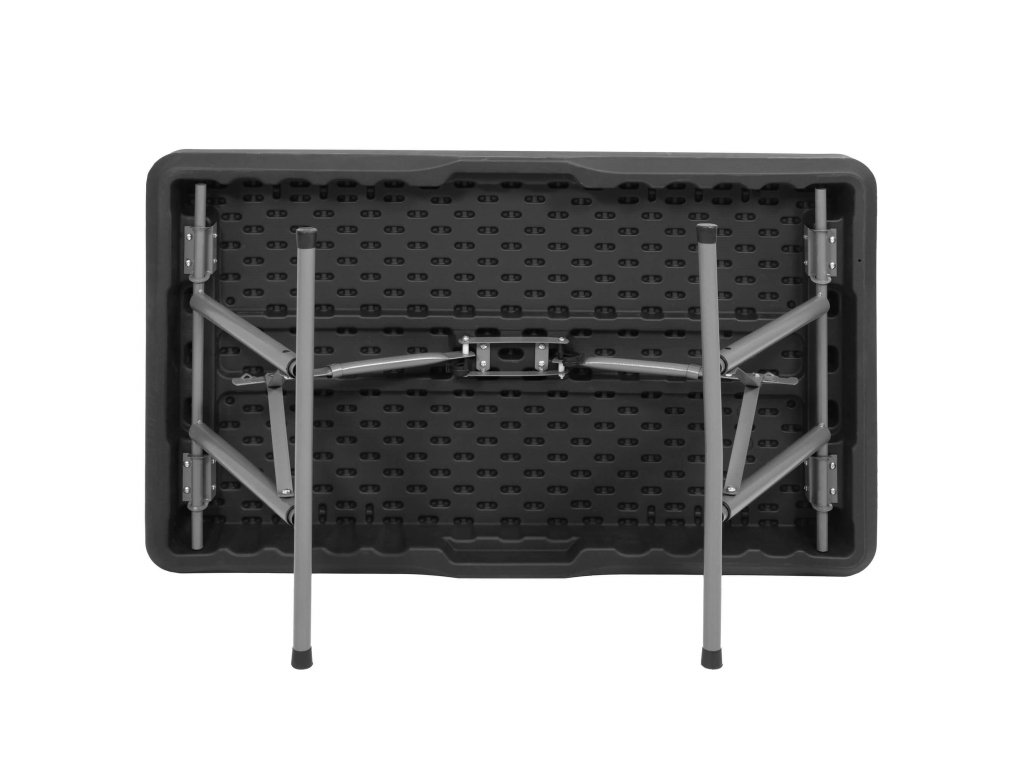 - Zložene klopi se v celoti skrijejo znotraj zložene mize, zato so zložene dimenzije celotnega kompleta enake kot dimenzije zložene mize