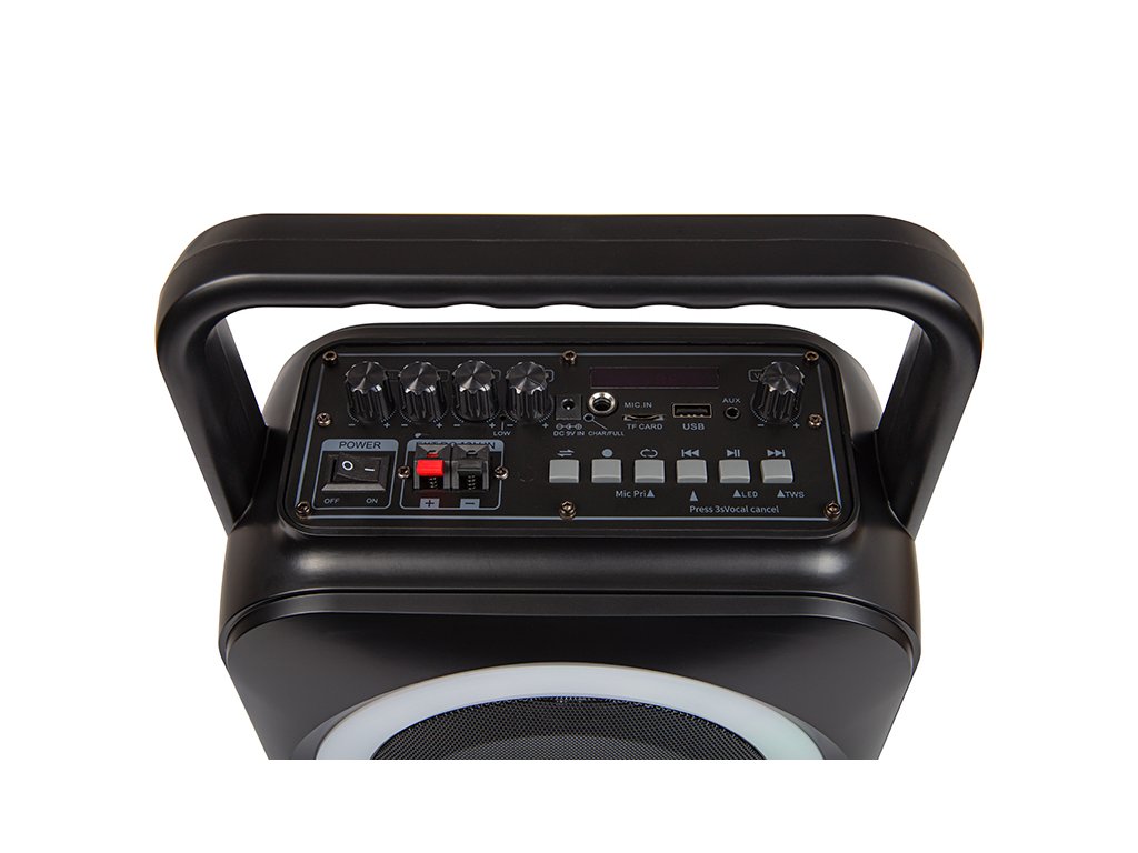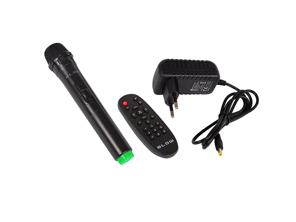 Zvočnik ima vhod Jack 6,3 mm, ki se uporablja v vseh profesionalnih ozvočevalnih sistemih. Ta rešitev se bo odlično obnesla na srečanjih, konferencah, sejmih in v vseh drugih situacijah, kjer mora biti vaš glas glasen. Zahvaljujoč načinu karaoke bo omogočil tudi odlično zabavo. V kompletu najdemo tudi brezžični mikrofon in daljinski upravljalnik.