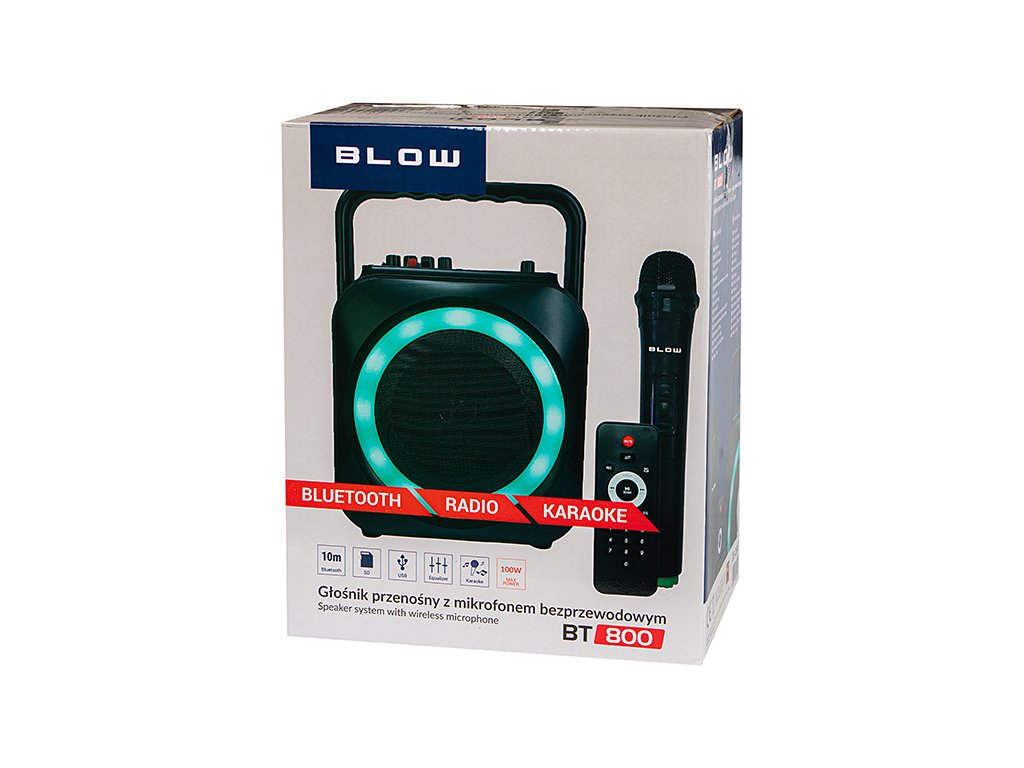 Brezžični zvočnik nam bo zagotovil čist in jasen zvok doma ali na prostem. Omogočil nam bo poslušanje FM radia in priljubljene glasbe s pametnega telefona ali drugega nosilca podatkov. Opremljen je z Bluetoothom in številnimi vhodnimi priključki (USB, SD, AUX). Poleg tega nam bo model BT 800, zahvaljujoč brezžičnemu mikrofonu, priloženemu v kompletu, in dodatnimi nastavitvami glasnosti in odmeva mikrofona, omogočil organizacijo razburljivih karaoke nastopov. Kljub velikim dimenzijam je priročen za prenašanje in nam bo vedno zagotovil dobro razpoloženje ob vseh srečanjih na prostem.