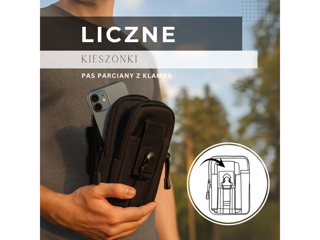 Vonku: patentky na pripnutie na opasok, dve vrecká zapínané na sponu