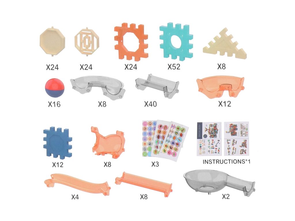 - Svetlo oranžni konstrukcijski elementi zapakirani v 6 ločenih vrečk