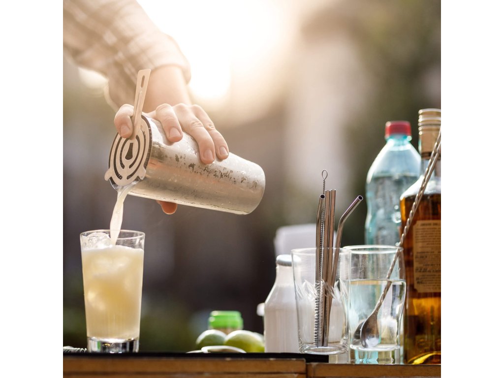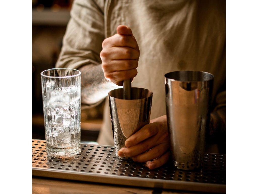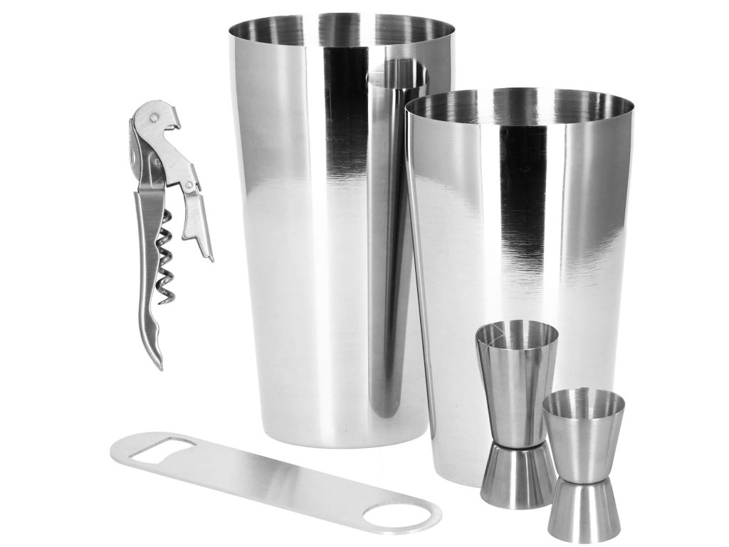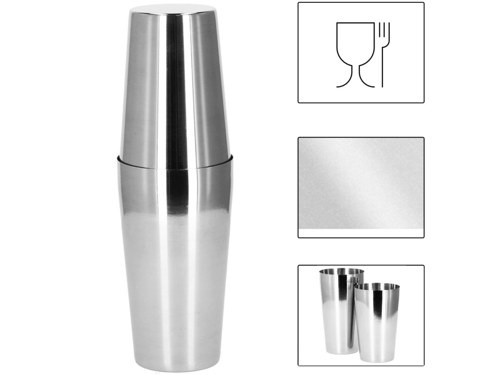 - 1 x bostonski šejker (dvodelen) (skupna višina: 26,5 cm, premer osnove: 6,5 cm)