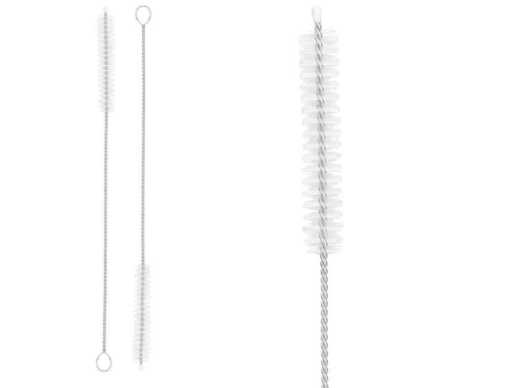 - krtače z obročkom na koncu omogočajo obešanje, konica pa je zaščitena, da ne opraska notranjosti slamčic