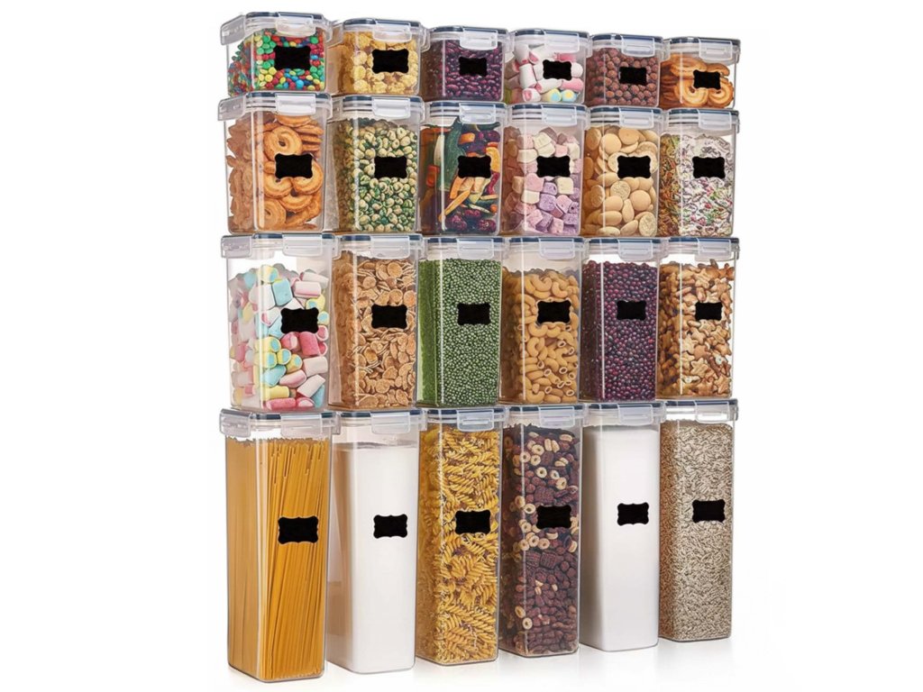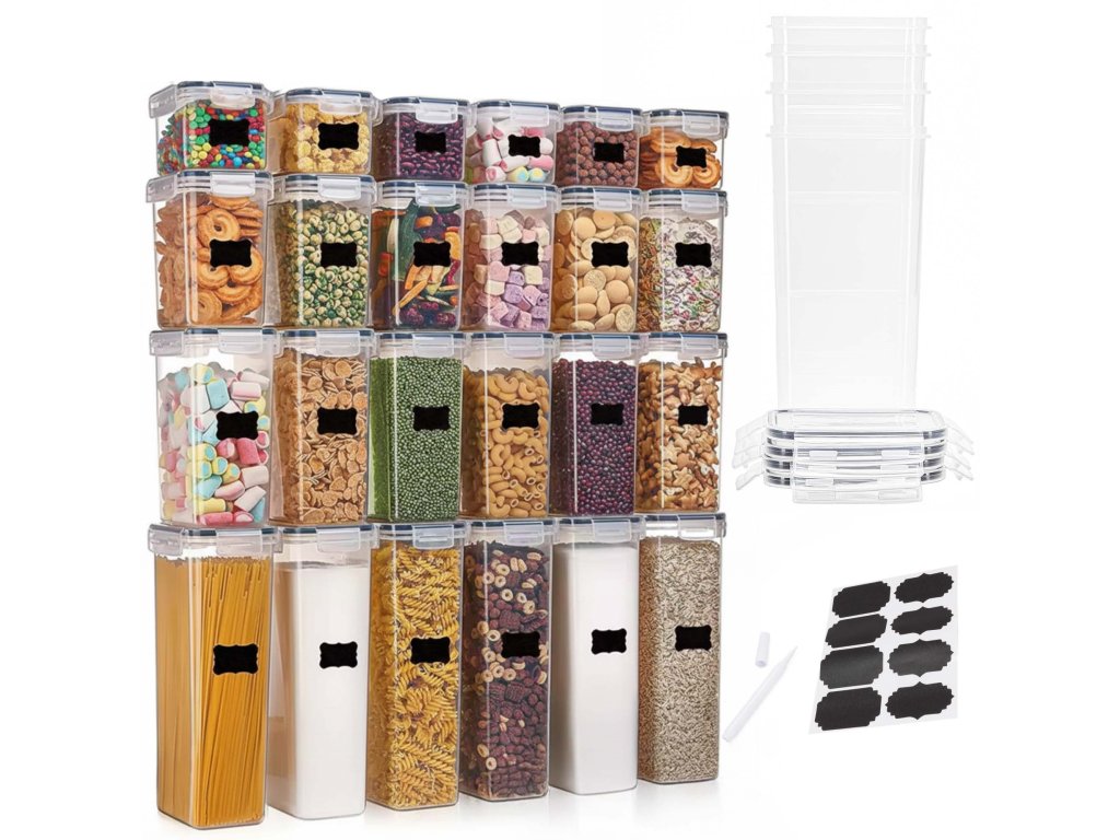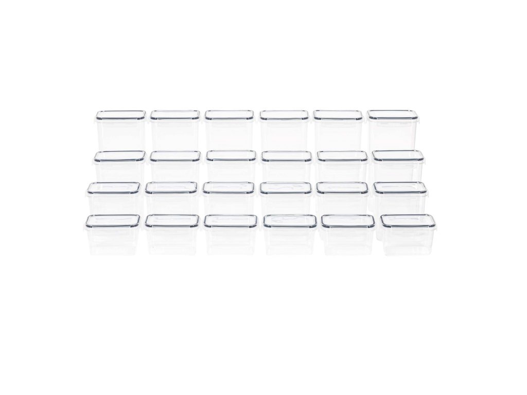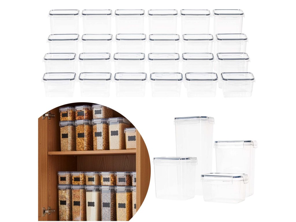 - Komplet vključuje 24 posod, 24 pokrovov, 24 etiket in bel marker