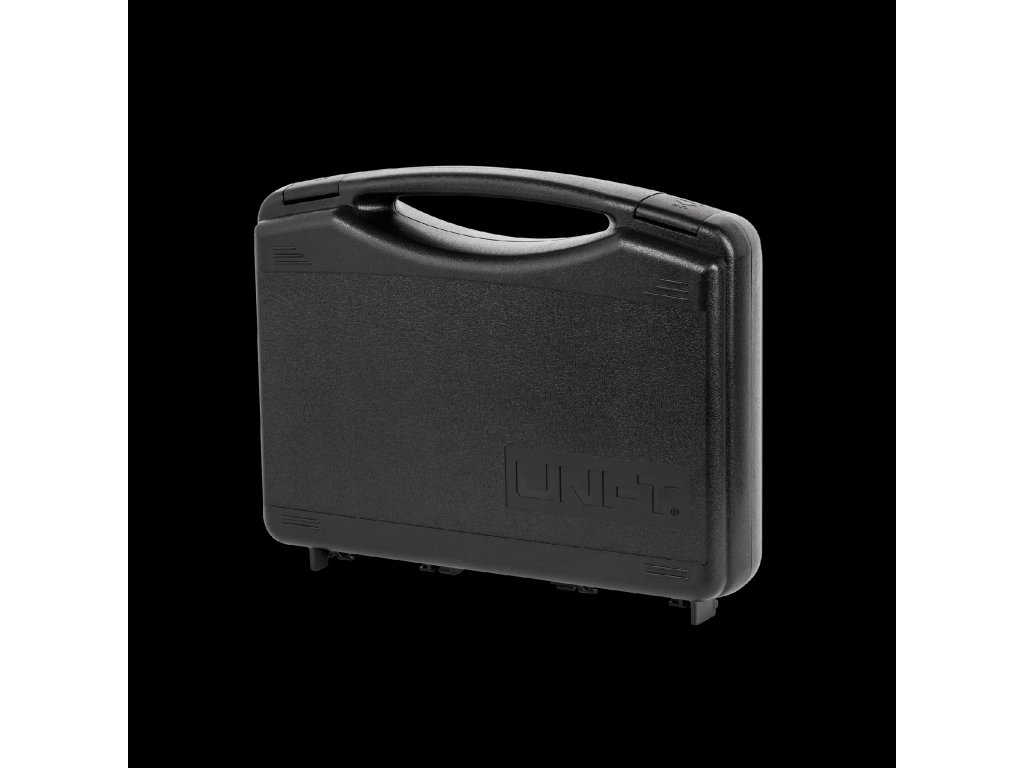 UT222 ima velik, osvetljen LCD zaslon z maksimalnim prikazom 6000, kar zagotavlja berljivost tudi v težkih svetlobnih pogojih. Odprtina klešč 63 mm omogoča merjenje velikih vodnikov, ergonomska zasnova s težo 725 g pa zagotavlja udobno uporabo. Naprava je napajana z baterijo 9 V (6LF22) in ima funkcijo samodejnega izklopa, kar povečuje njeno življenjsko dobo.