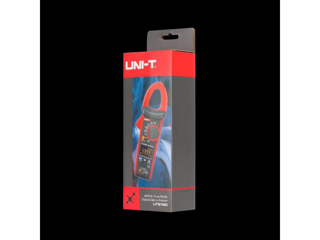UT216C se ponaša z ergonomsko zasnovo z robustnimi čeljustmi odprtine 30 mm, kar omogoča enostavne meritve v ozkih prostorih. Merilnik ima osvetljeni LCD zaslon z analognim bargrafom, kar olajša odčitavanje rezultatov tudi v slabo osvetljenih prostorih. Samodejni izklop po 15 minutah nedejavnosti ter indikator nizke ravni baterije povečujeta udobje uporabe.
