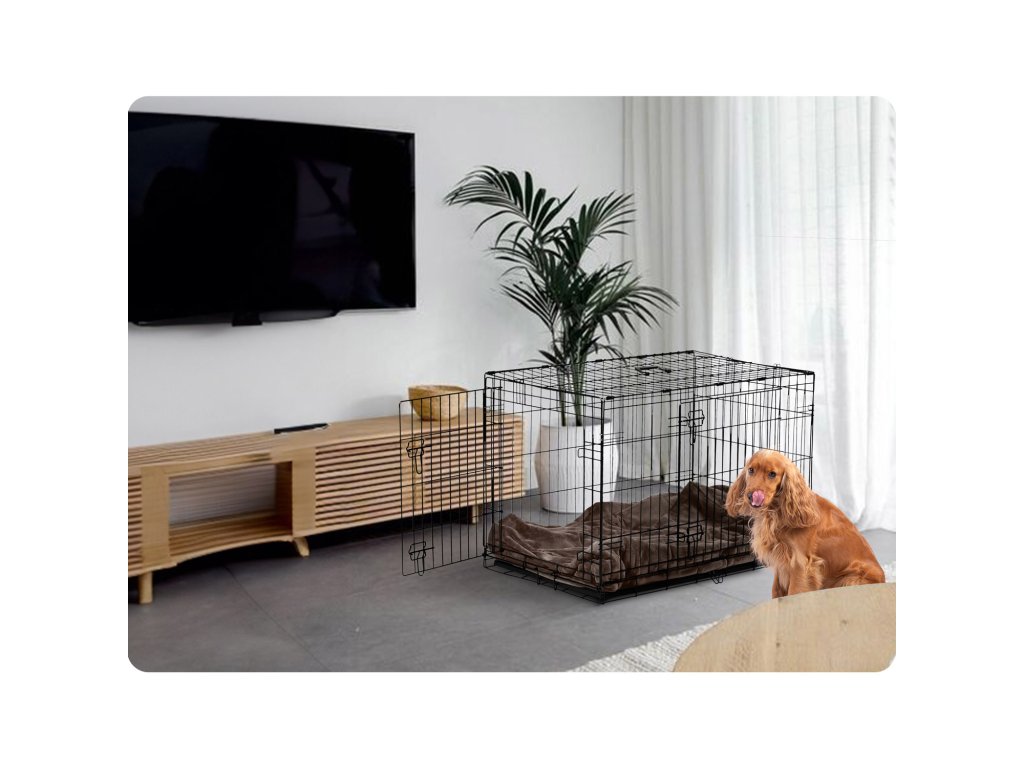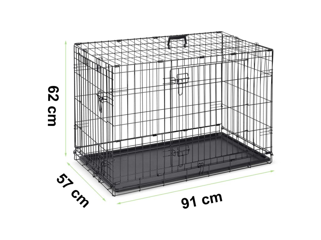 - Dvojna vrata – sprednja in stranska – omogočajo enostaven dostop in prilagodljivost pri postavitvi kletke.