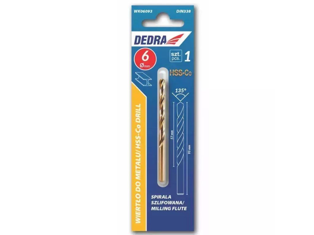 Kobaltni kovinski sveder z valjasto konico. Zaradi 5 % vsebnosti kobalta je sveder bolj odporen proti toplotnim poškodbam med vrtanjem. Brušena žlebova zagotavlja učinkovit odvod materiala iz odprtine. Primerno za: jeklo, litino, konstrukcijsko jeklo, proti kislinam odporno jeklo, ognjevarno jeklo, neželezne kovine, plastiko.
