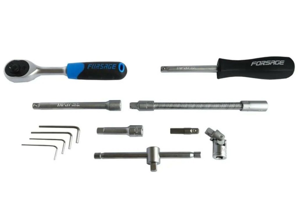 Del seta je račnjava, opremljena z vzdržljivim račnarskim mehanizmom. Set vsebuje bogat paket nastavkov (v velikostih od 4 do 14 mm) in vijak nastavkov (ravni, križni, šesterokotni, Torx). Dodaten so podaljški (vključno s fleksibilnim), univerzalni zglob, šesterokotni ključi, T-ročaj in nosilec za bit. Elementi so razporejeni v praktičnem kovčku. Set je idealen za profesionalno in amatersko uporabo. Profesionalna proizvodnja in trdo krom-vanadijevo jeklo zagotavljata njeno moč in trdnost. Vse velikosti ključev so označene za udobje uporabnika.