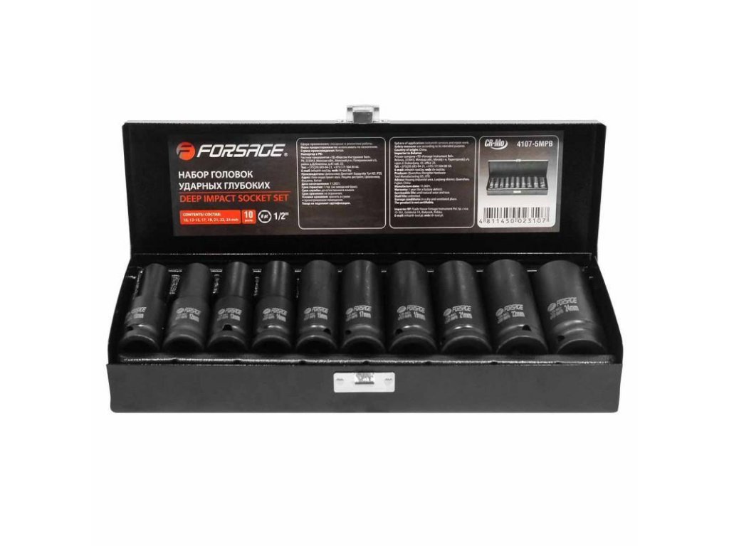 Komplet dolgih udarnih nastavkov 1/2" 10-24mm