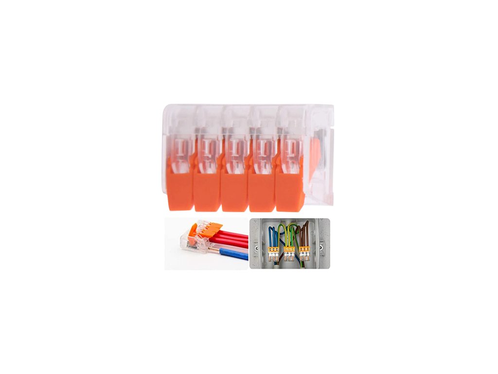 Komplet vsebuje: 2-portni 35 kosov 3-portni 25 kosov 5-portni 15 kosov Univerzalni instalacijski hitri spoji opremljeni z objemko. S pomočjo izdelkov iz te serije lahko povežete enojne in večžilne vodnike v širokem obsegu prečnih prerezov. Močna stran spojk te serije je možnost povezovanja vodnikov različnih tipov in različnih prerezov. Te spojke se lahko uporabljajo tako v električnih instalacijah kot tudi za povezovanje avdio instalacij. Lastnosti: vrsta vodnika: enojni ali večžilni skupno število potencialov: 1 nazivna napetost EN: 250V nazivna impulzna napetost: 4kV nazivni tok: 32A prerez (enojni vodnik) od 0,08mm do 2,5mm (od 28 do 14 AWG) prerez (linijski vodnik) od 0,08mm do 4mm (od 28 do 12 AWG) dolžina odstranitve izolacije: približno 10 mm kontaktni material: kositrana medenina material ohišja: PC UL94 V-2 pakiranje zapiralna škatla s predelki velikosti: 172X98X25 mmV komplet spadajo: